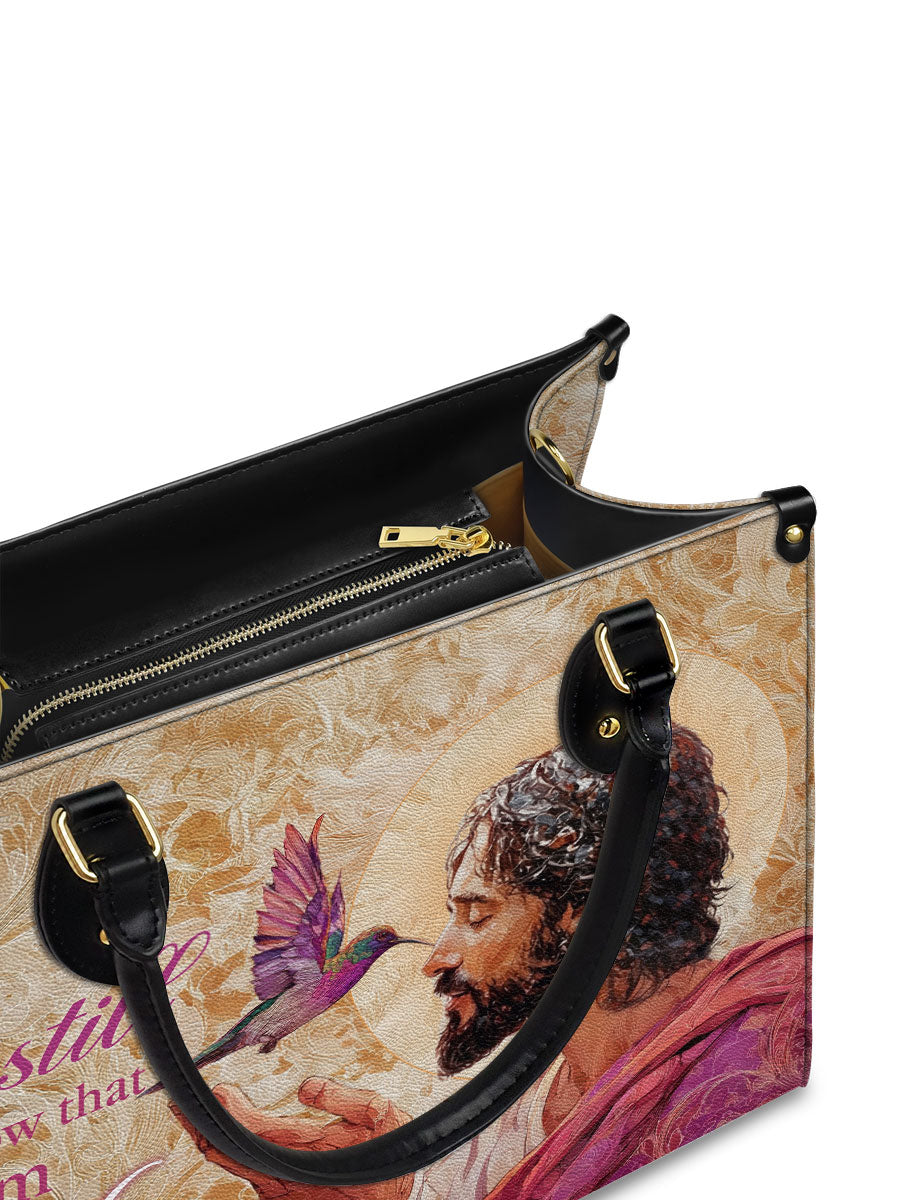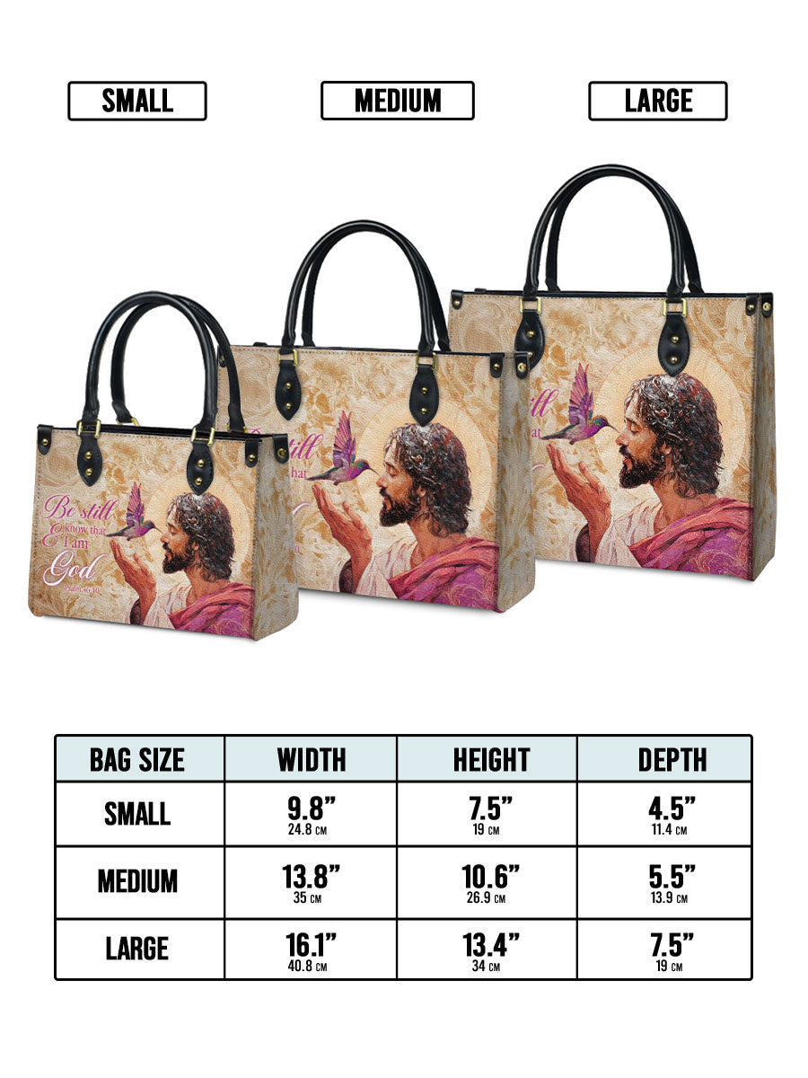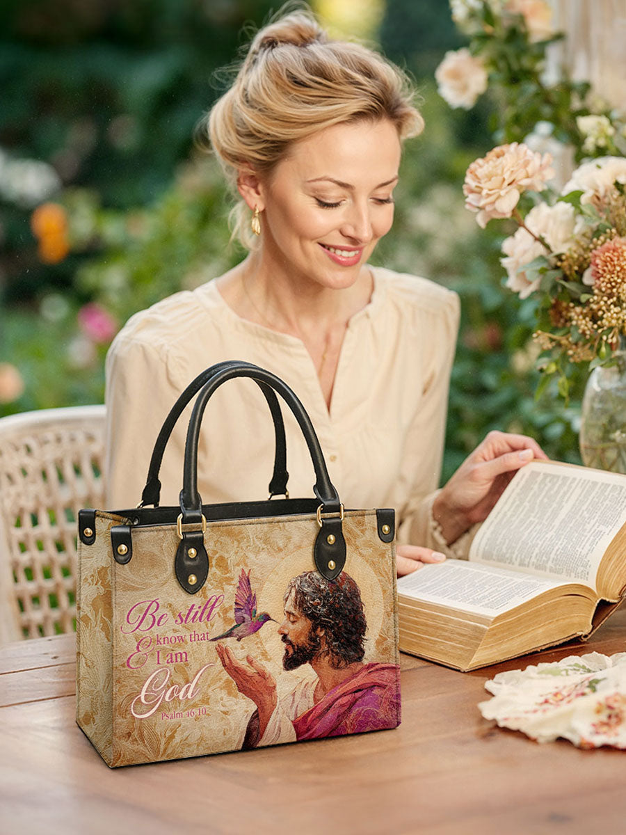 Soft tones, sacred imagery, and the timeless message from Psalm 46:10 make this tote a gentle companion for prayer, reflection, and daily life. Every detail from the radiant background to the reverent pose of Christ - whispers of peace and trust in God’s guidance.