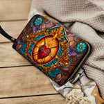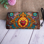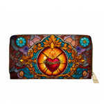 Featuring the Sacred Heart crowned with thorns and aflame with divine light, this wallet reflects Christ’s sacrifice and unending love. The ornate stained glass design brings timeless grace and reverence.