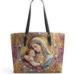 Catholight Divine Madonna And Child Leather Tote Bags