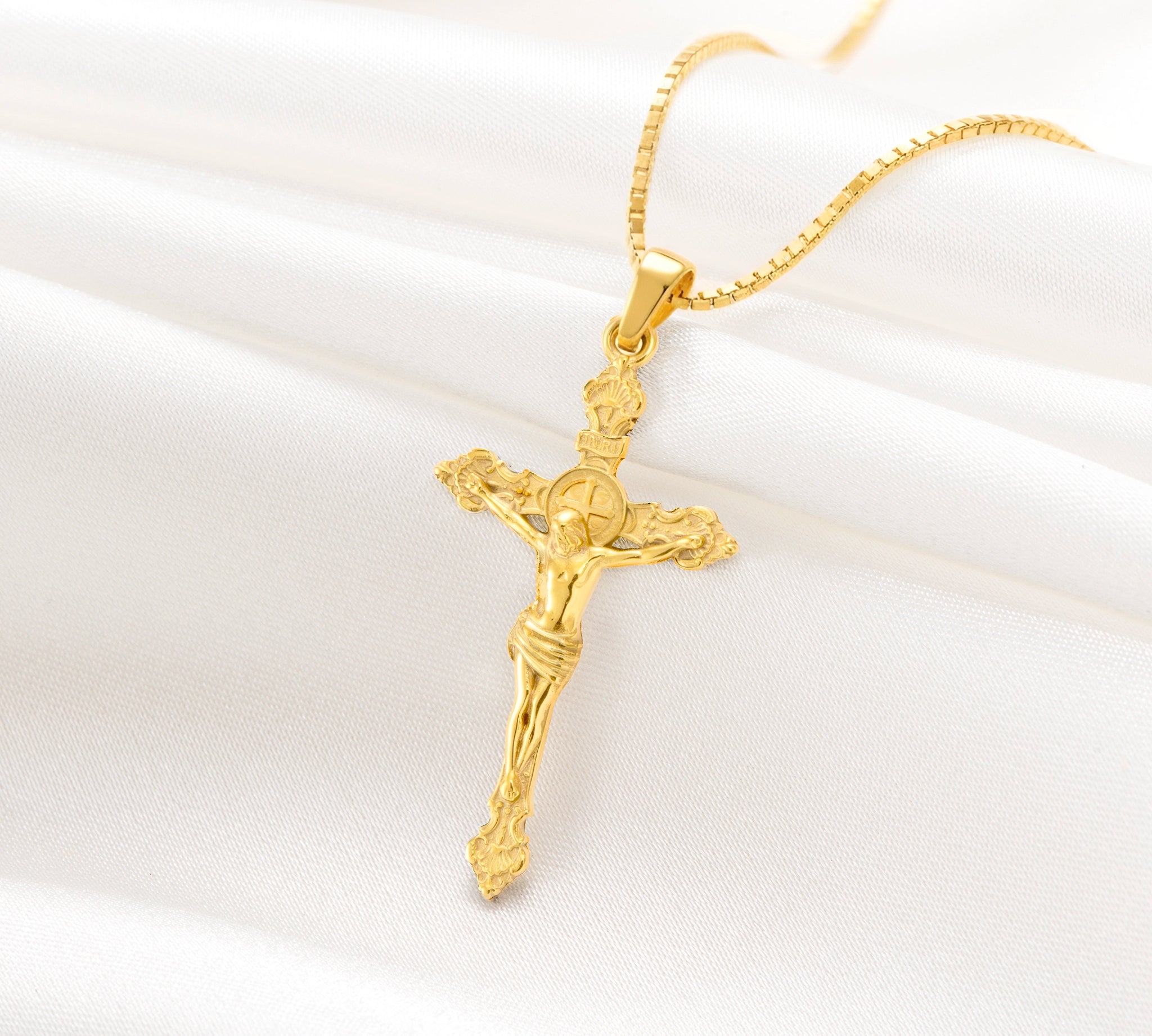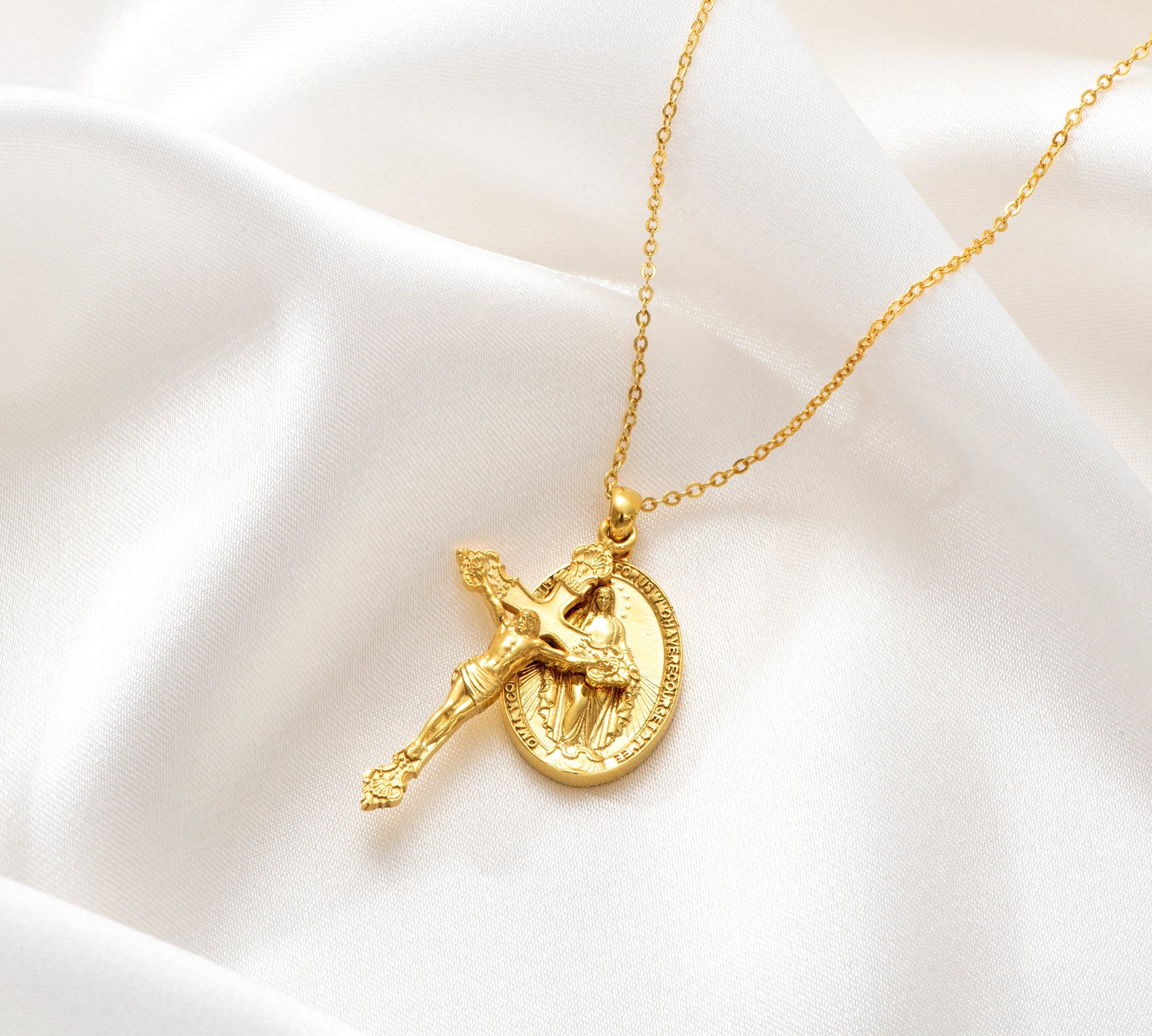 Catholight Miraculous Medal and Crucifix Necklace in Gold Vermeil