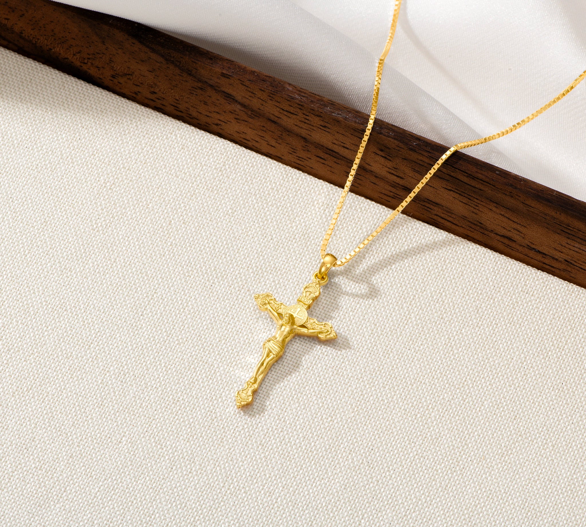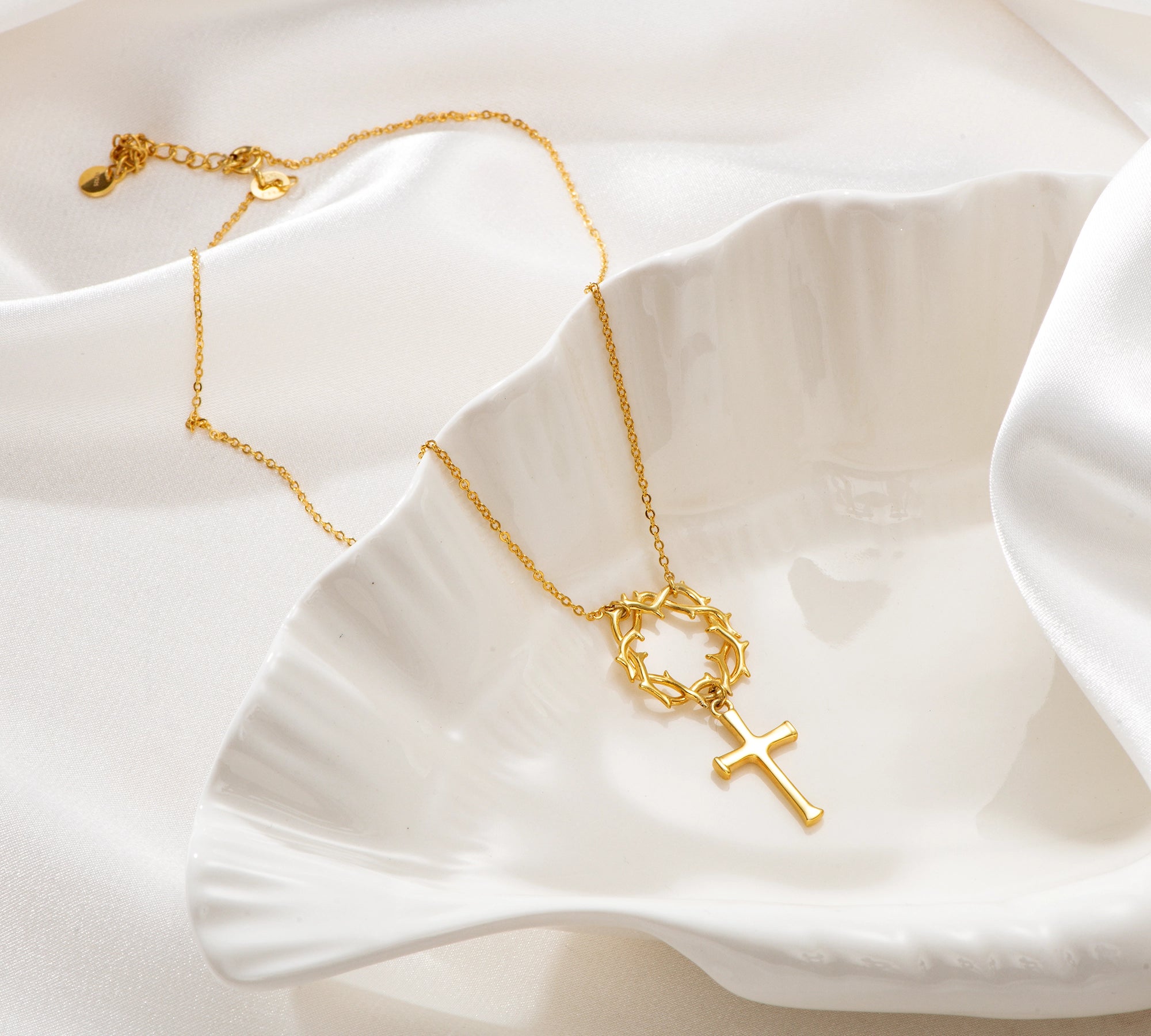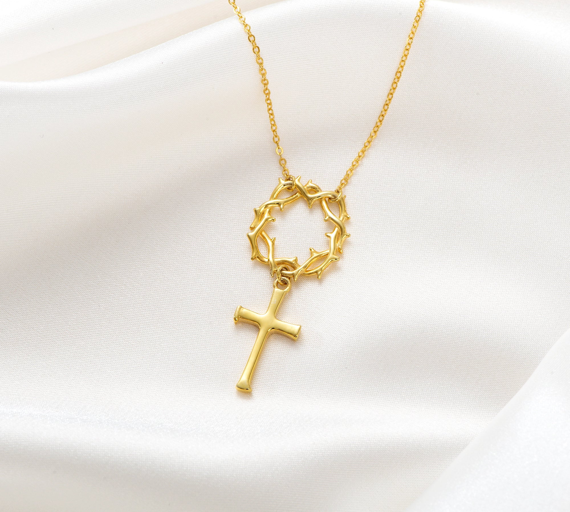 Catholight Crown of Thorns Cross Necklace in Gold Vermeil