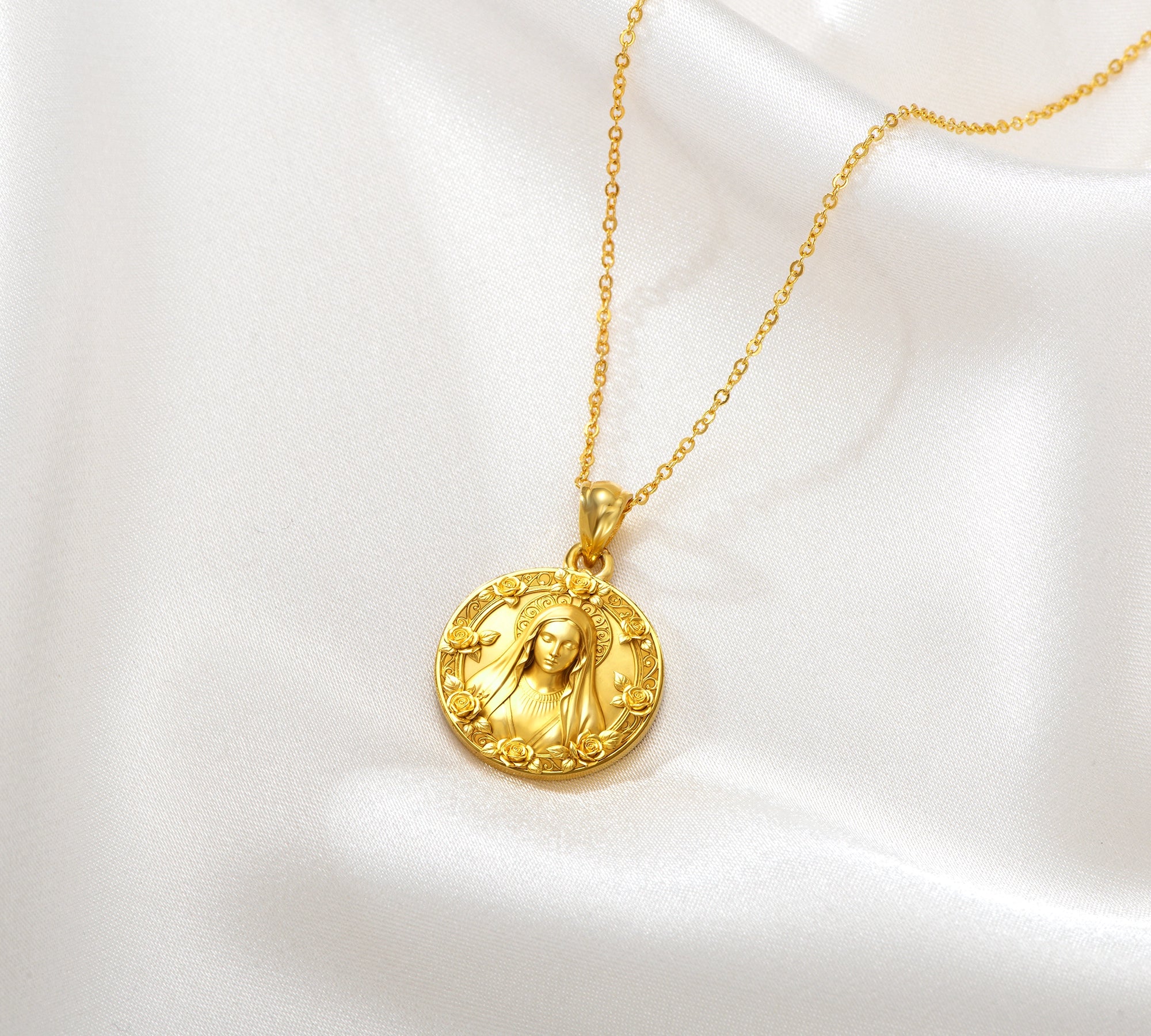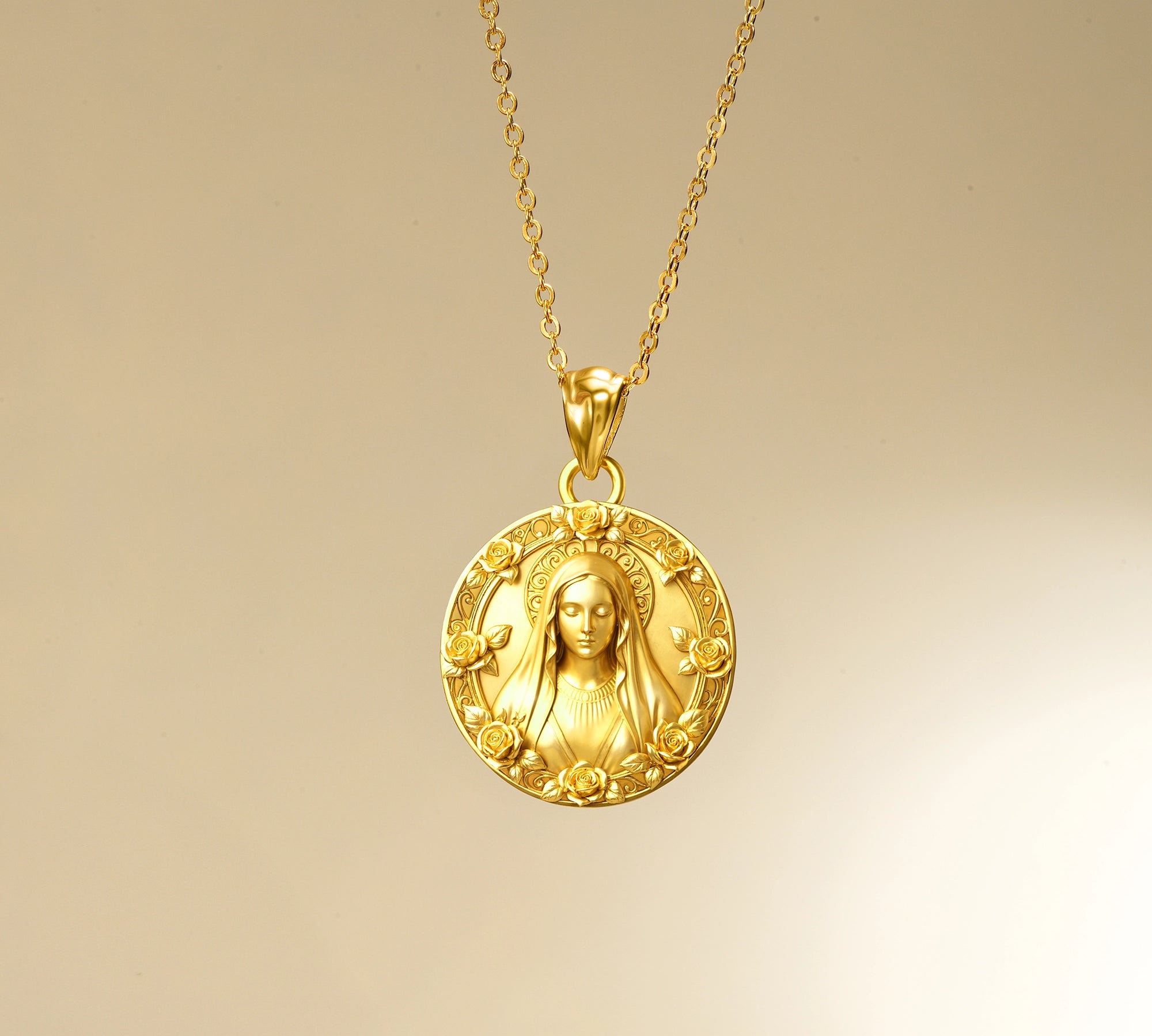 Catholight Blessed Virgin Mary Necklace in Gold Vermeil