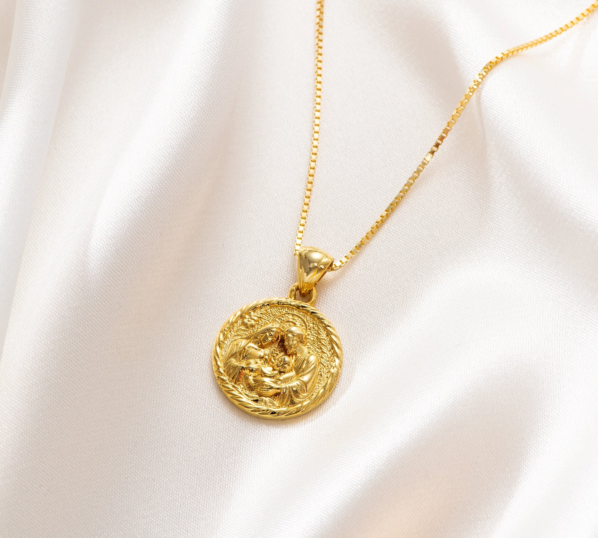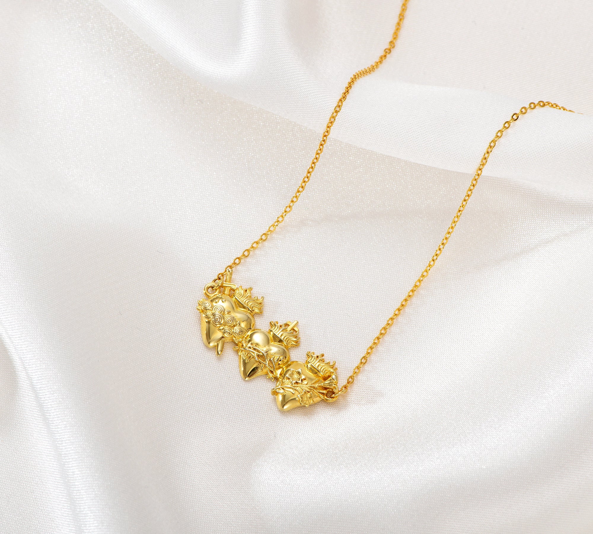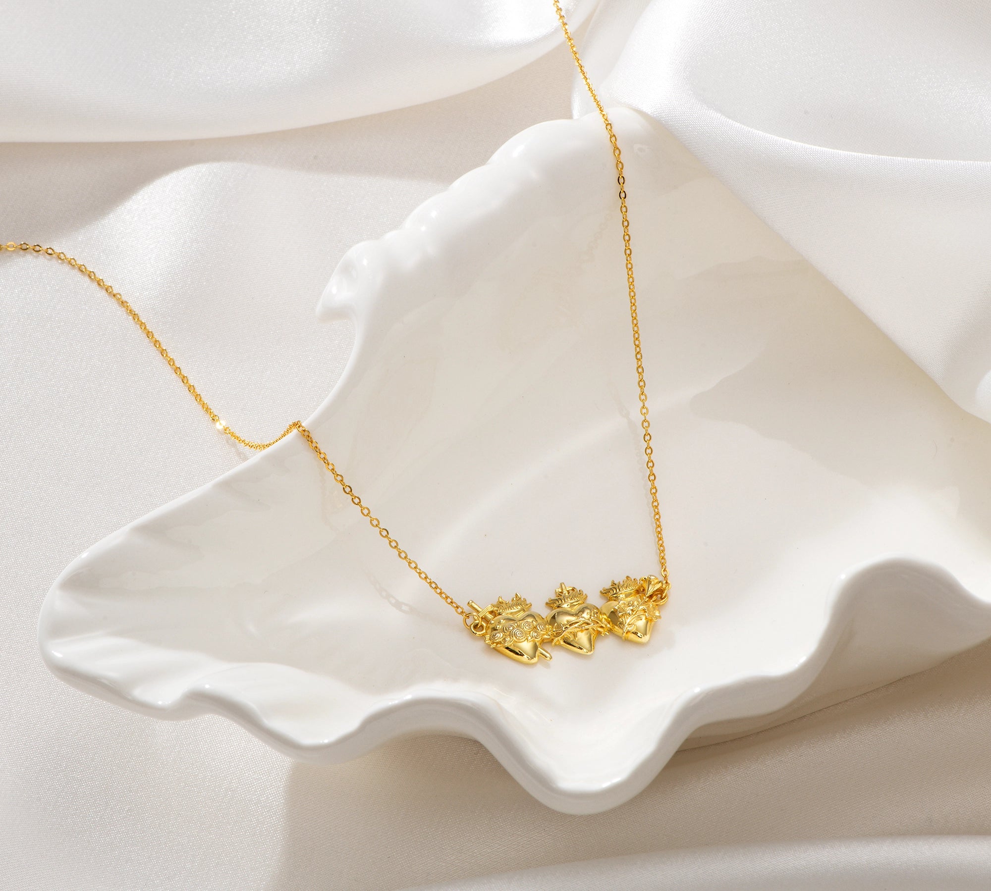 Catholight Holy Family Hearts Necklace in Gold Vermeil