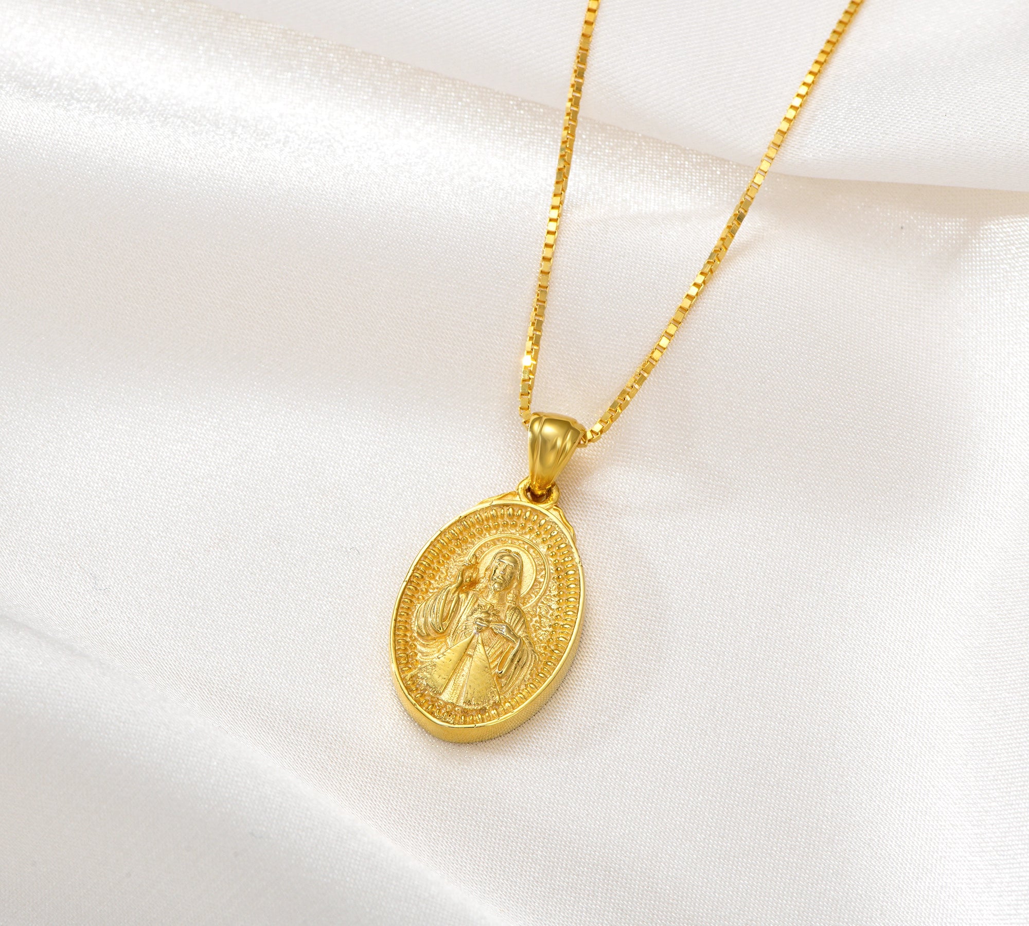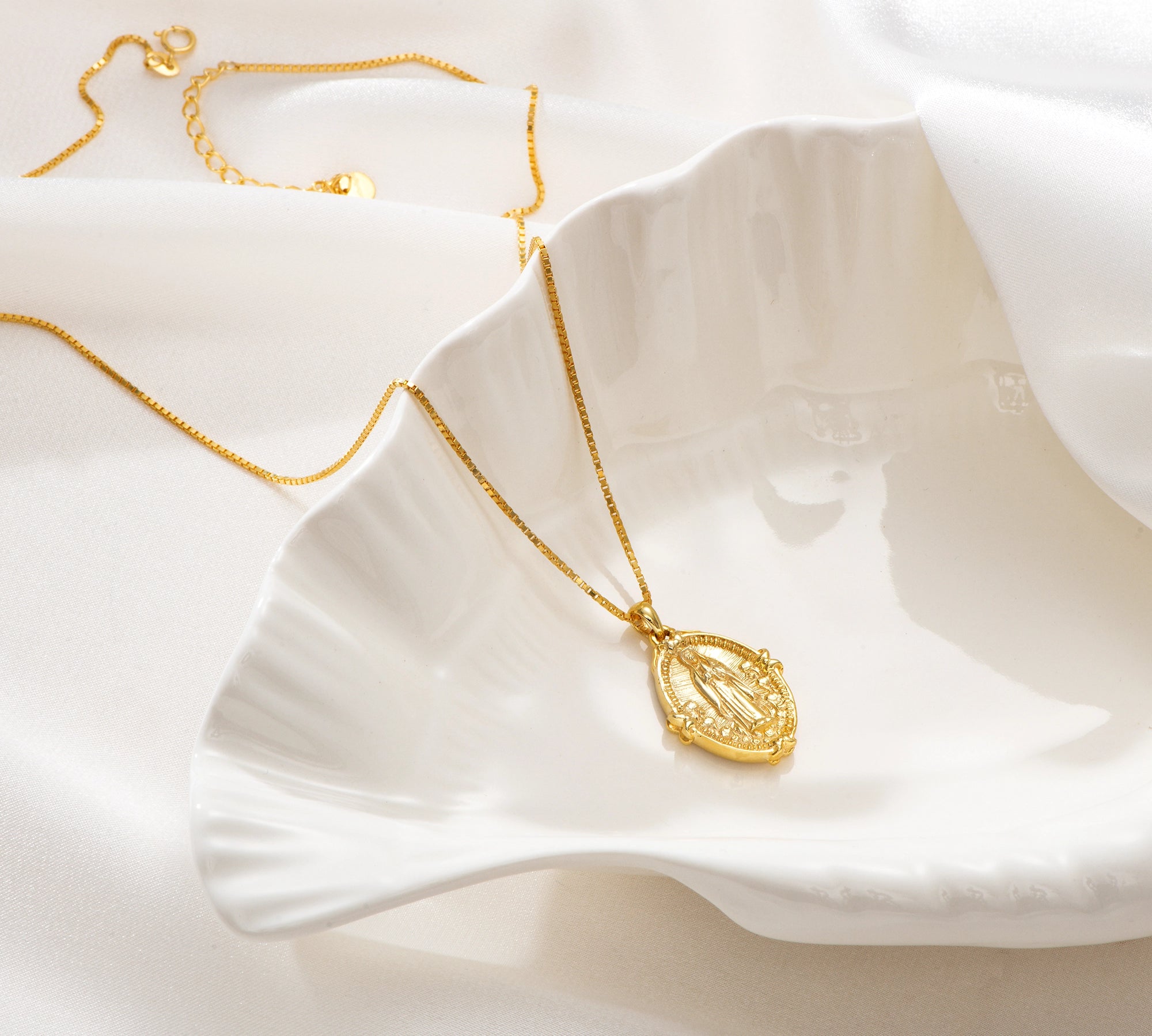 Catholight Miraculous Mary Necklace in Gold Vermeil