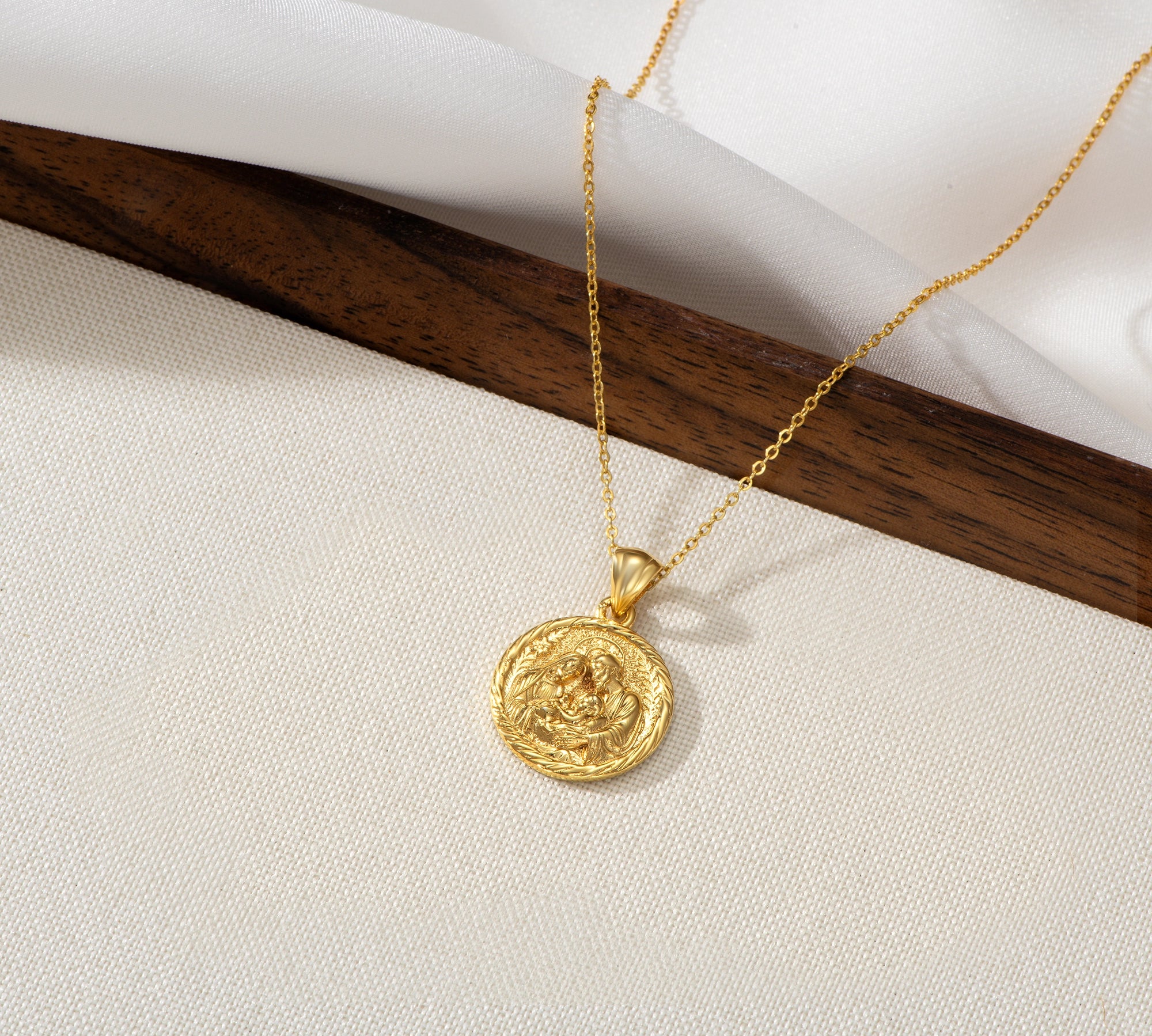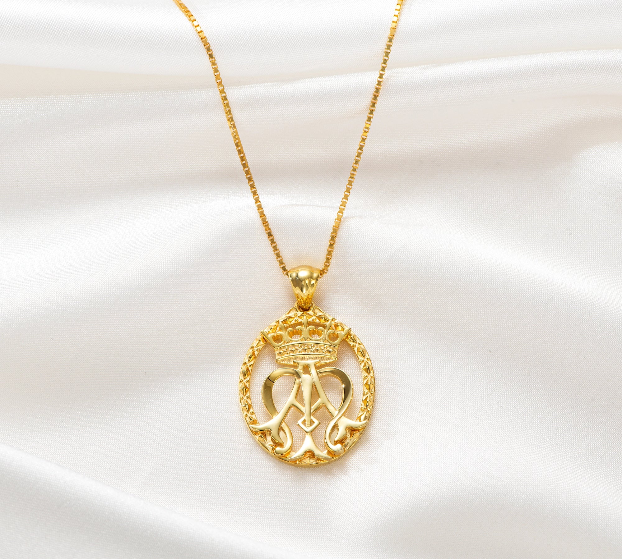 Catholight Openwork French Auspice Maria Necklace in Gold Vermeil