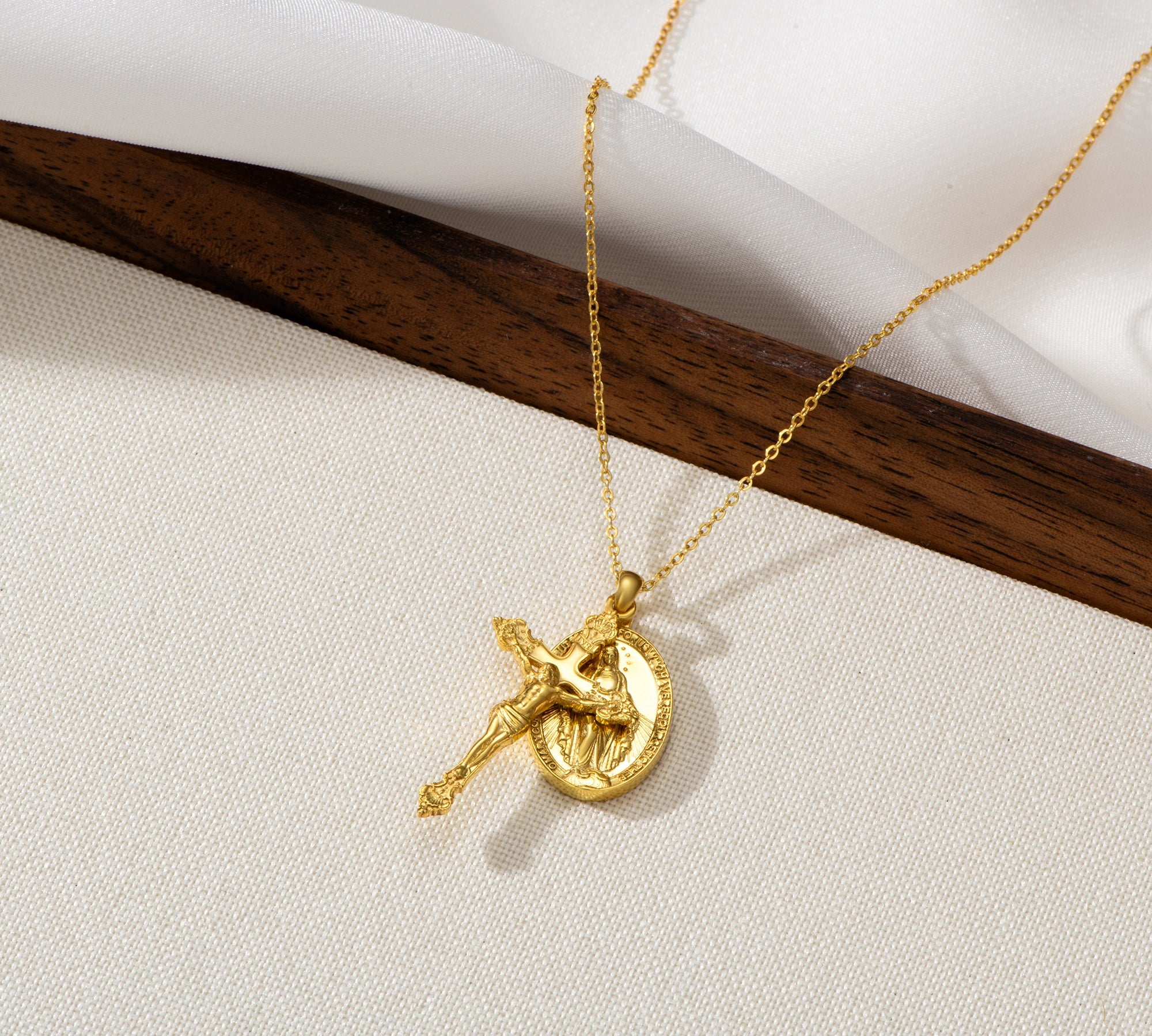 Catholight St. Benedict Crucifix Necklace in Gold Vermeil