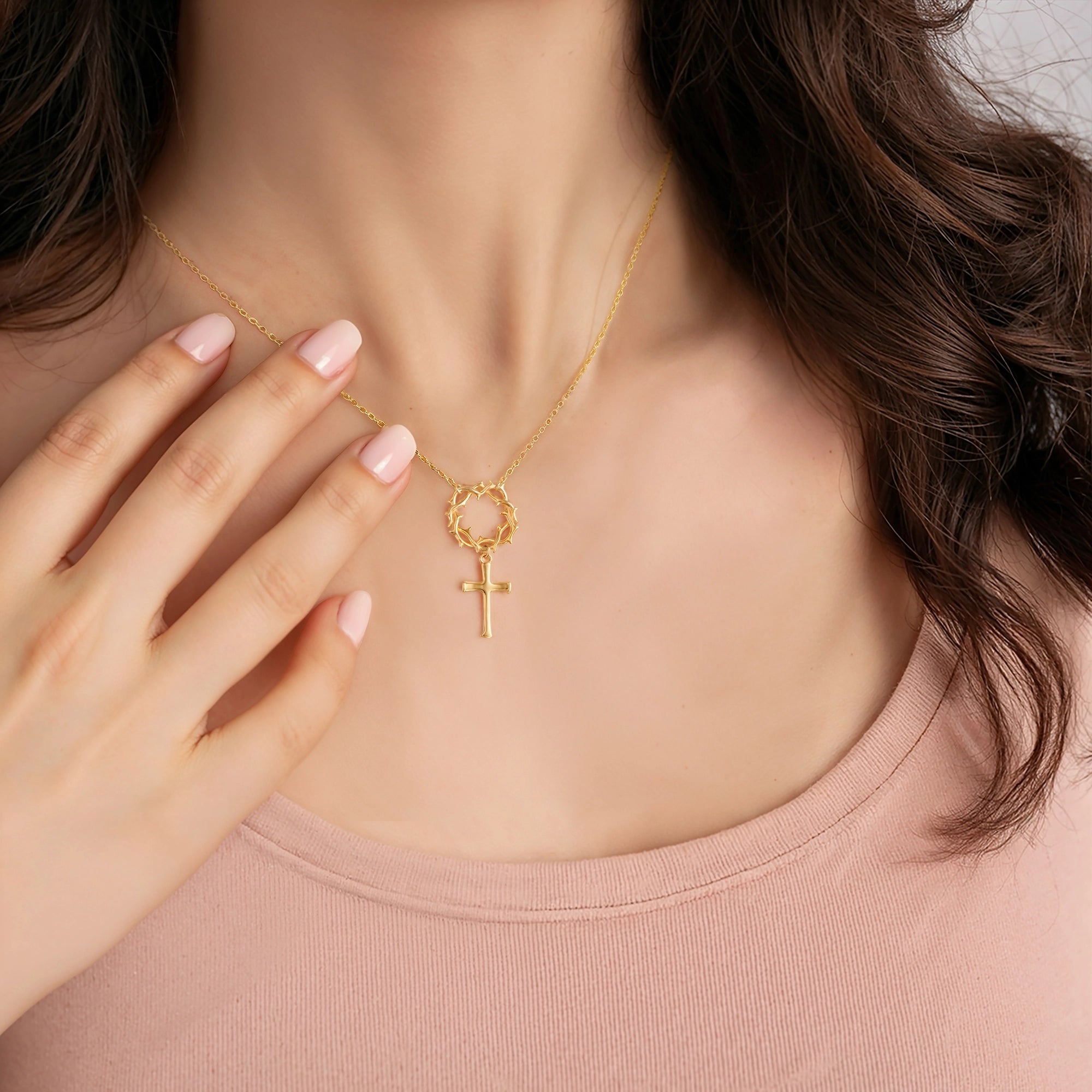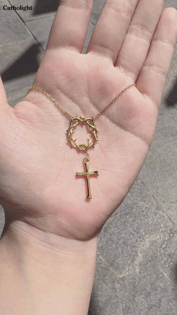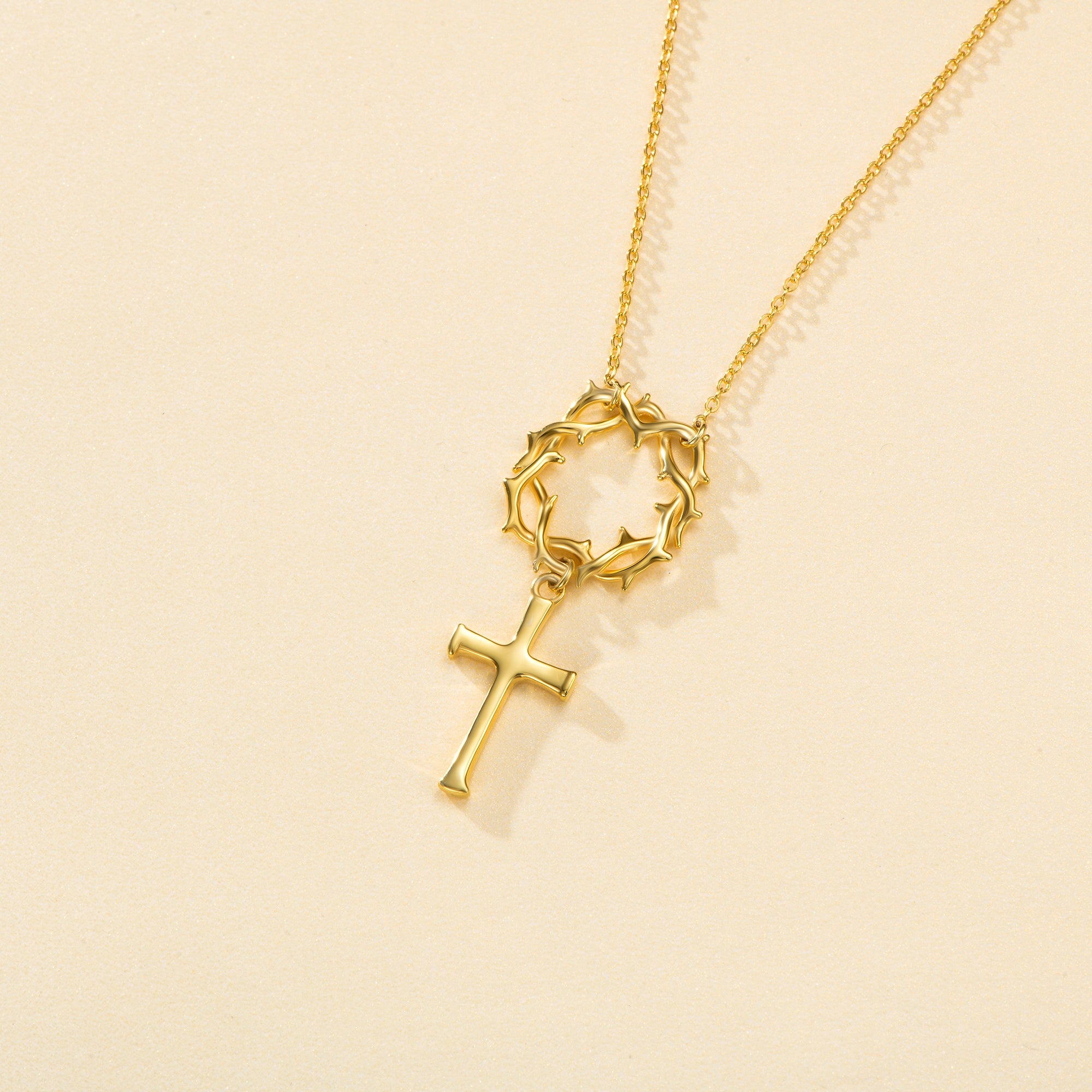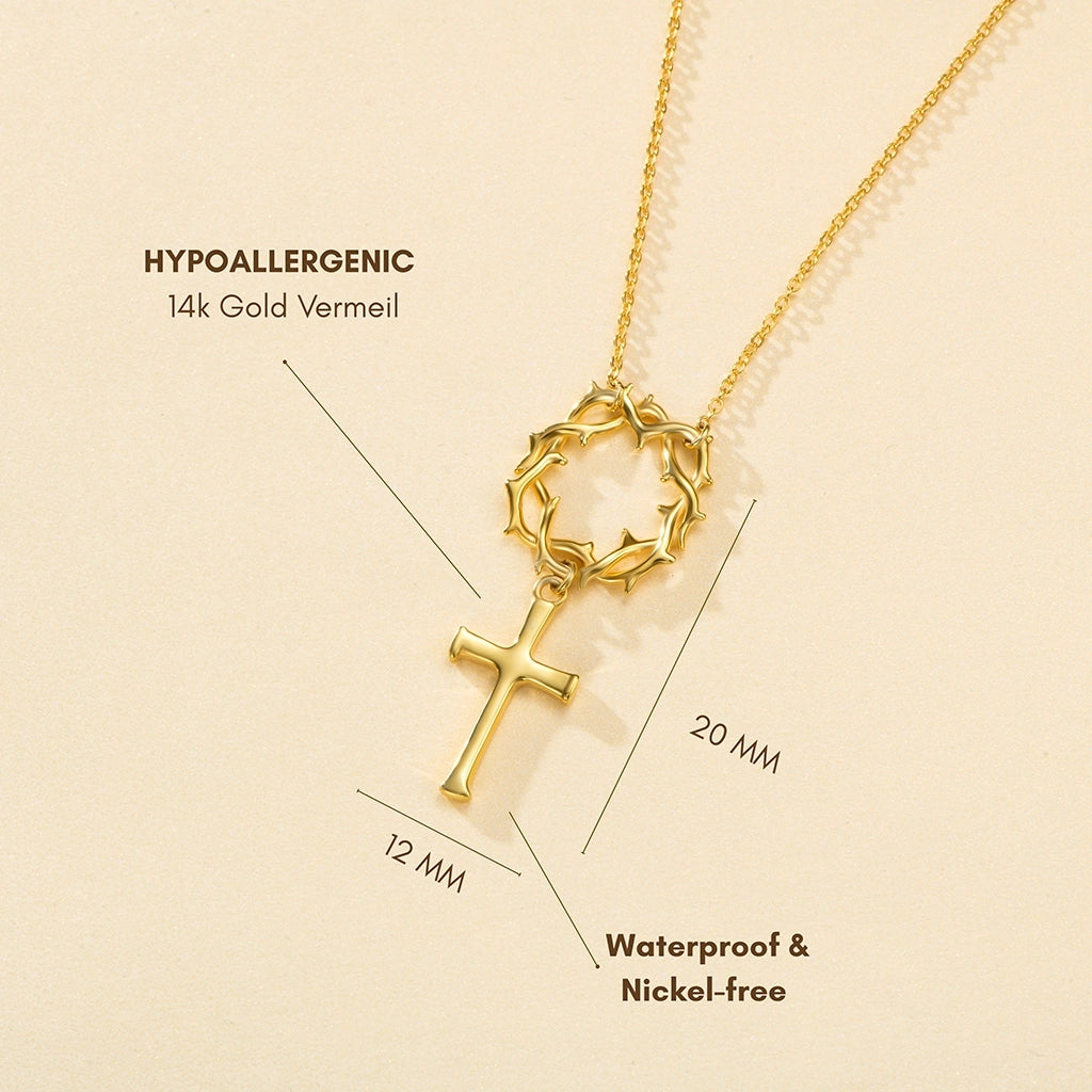 Catholight Crown of Thorns Cross Necklace in Gold Vermeil