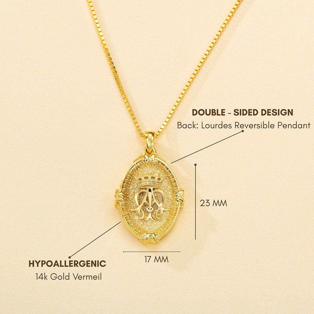 Catholight French Auspice Maria and Lourdes Reversible Necklace in Gold Vermeil