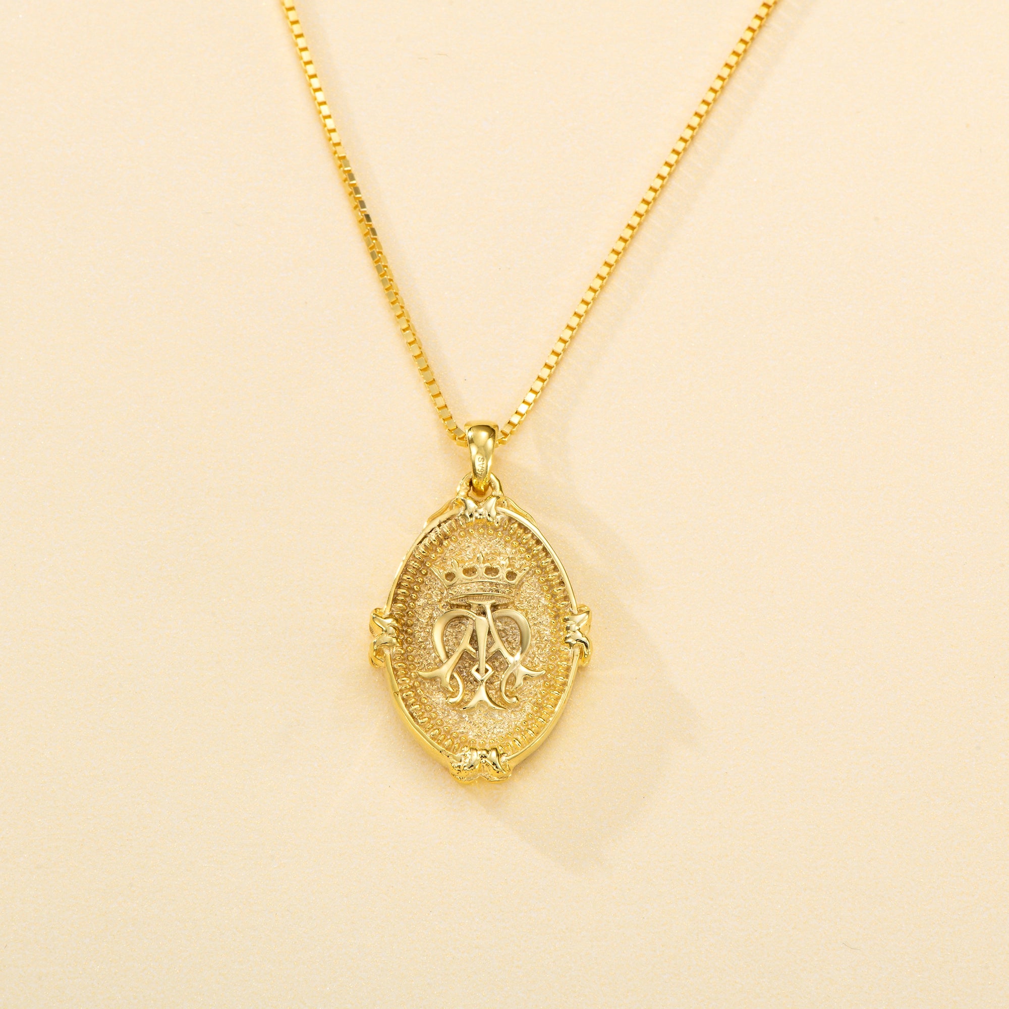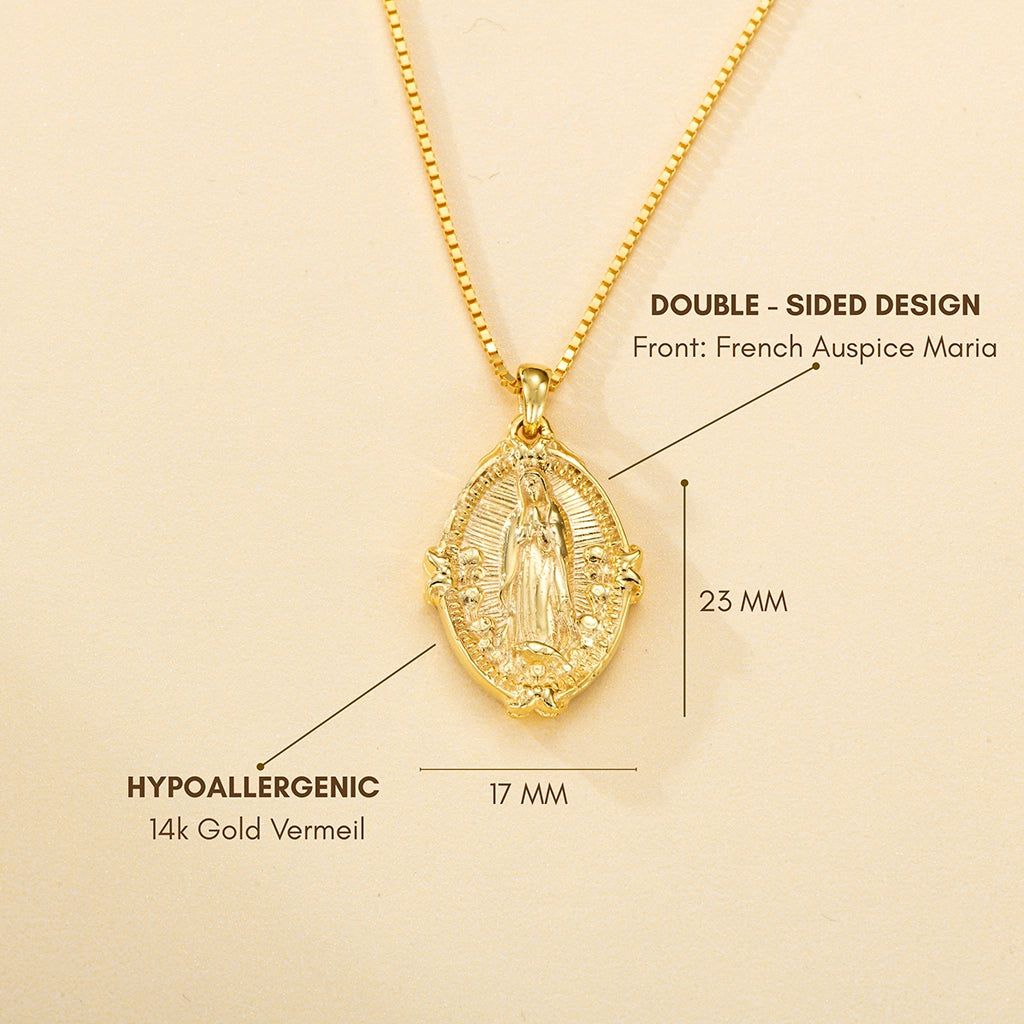 Catholight Openwork French Auspice Maria Necklace in Gold Vermeil