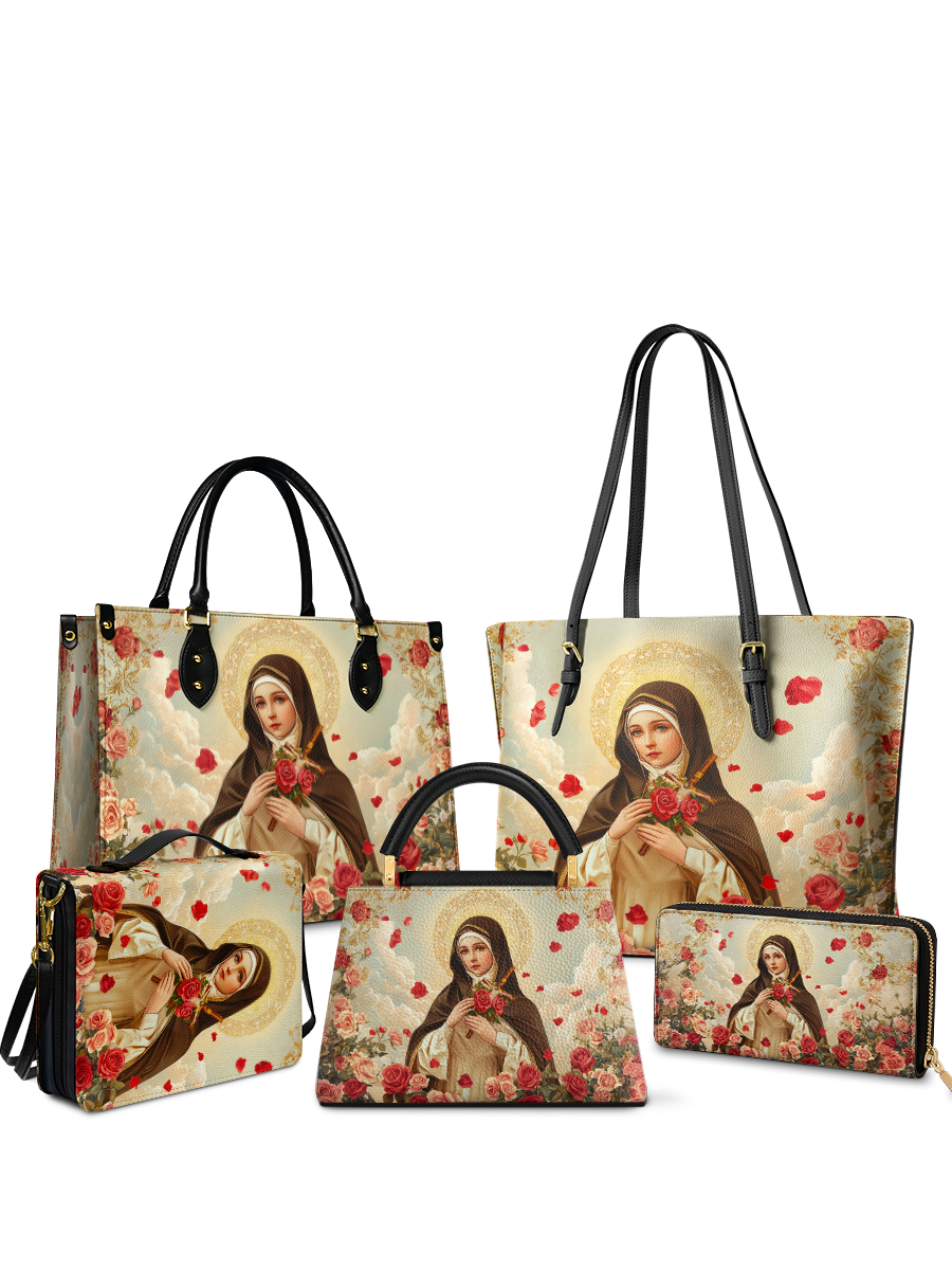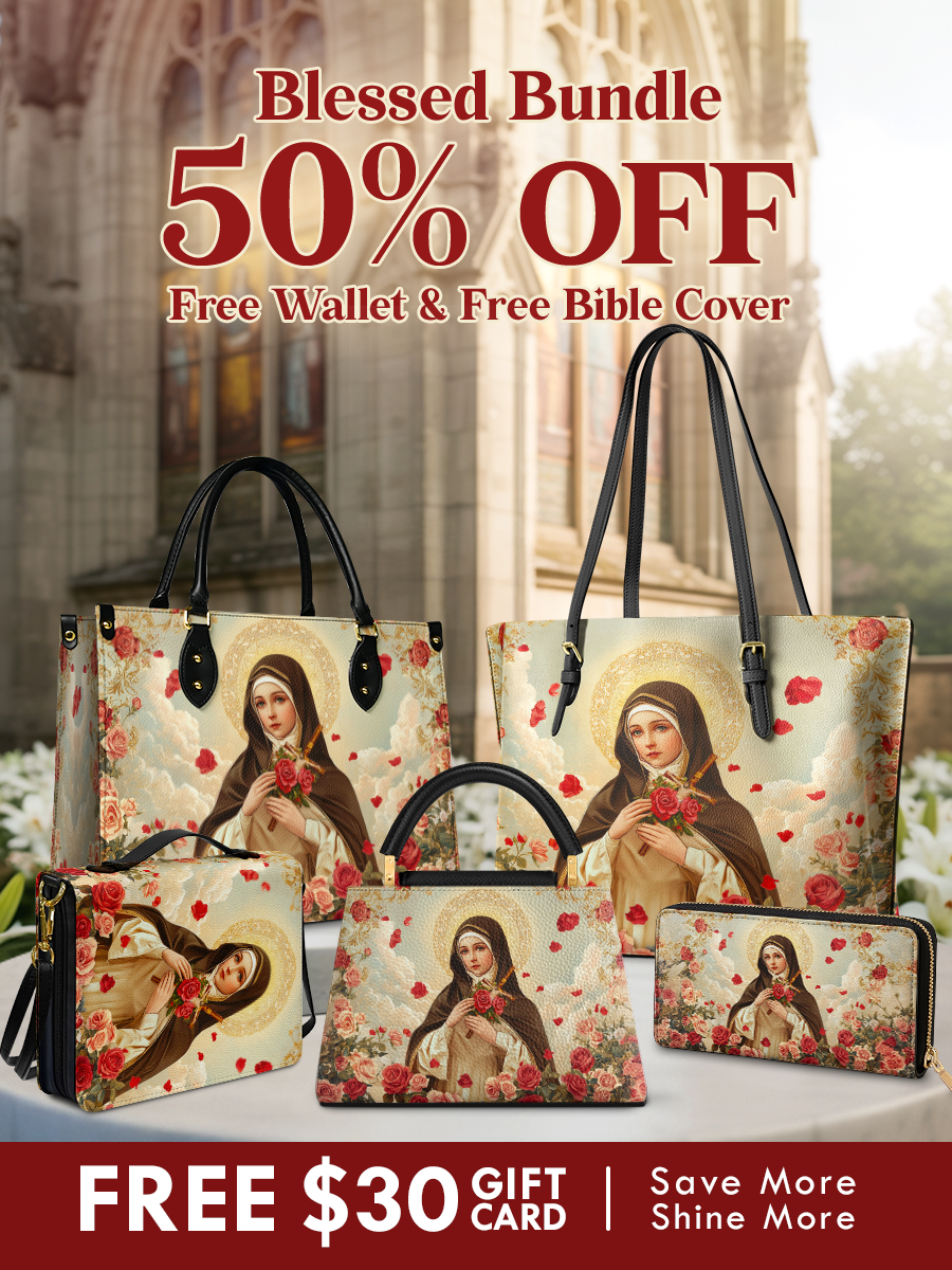 Embrace the fullness of faith and beauty with this complete St. Thérèse of Lisieux blessed bundle. Surrounded by roses and heavenly light, the Little Flower’s serene presence inspires peace, devotion, and love in daily life.