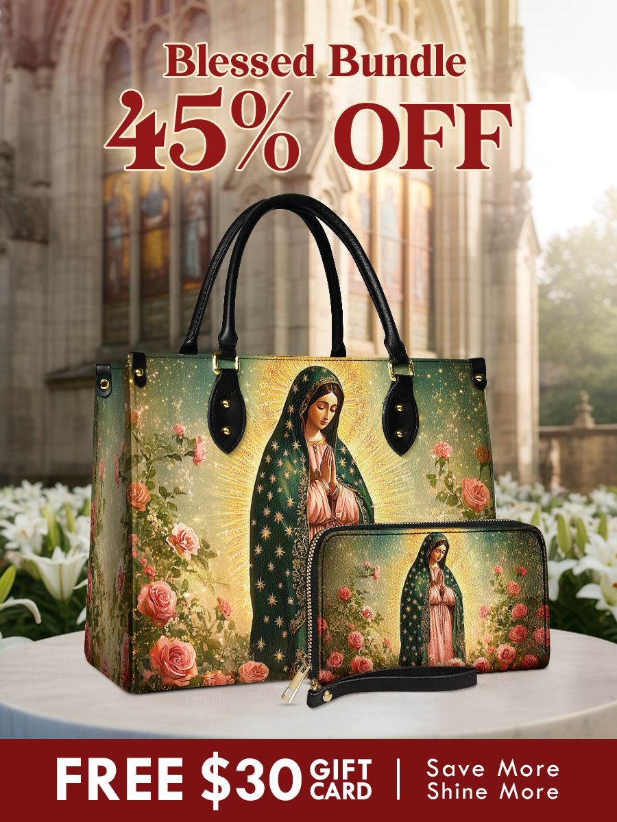 The elegant handbag provides structure and daily practicality, while the matching wallet keeps your treasures close at hand. Together, they form a faithful companion for women who carry devotion in their everyday lives.
