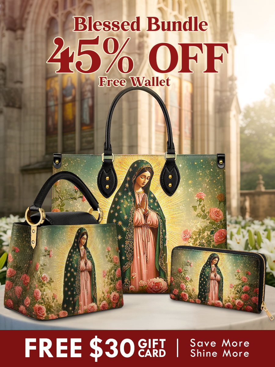 Including a spacious handbag, a graceful satchel bag, and a free matching wallet, this trio blends versatility with faith-filled artistry — perfect for every occasion.