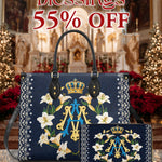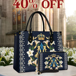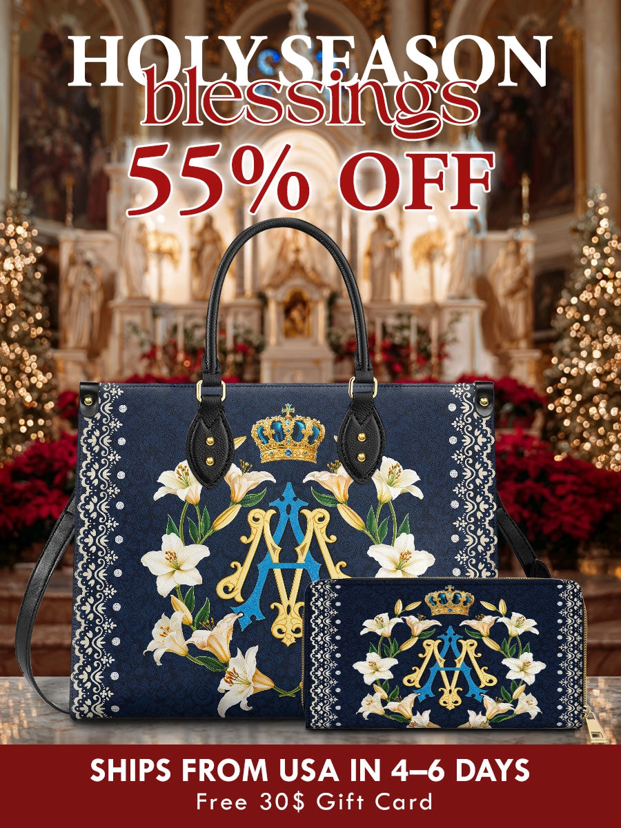 The structured handbag pairs elegance with function, while the matching wallet keeps your essentials close — both honoring the beauty of faith in every detail.