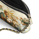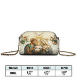 Designed with grace and intention, the Catholight Crossbody Bag is a quiet expression of faith and elegance. Its compact form, gold-accented chain strap, and symbolic artwork make it a meaningful companion for both daily life and sacred moments.