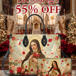 The structured handbag provides elegance and space for everyday use, while the matching wallet keeps your essentials organized with grace. Both pieces are crafted to be as practical as they are prayerful - a beautiful reflection of faith carried into daily life.