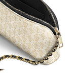 Handles & Straps: Gold-tone chain strap woven with leather, approx. 104cm long
