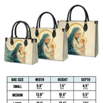 This beautifully crafted leather bag features a serene and radiant image of the Blessed Virgin Mary cradling the Christ Child, surrounded by a heavenly aura of gold and deep celestial blue. The delicate stars adorning Mary’s flowing veil and the luminous halos symbolize her divine role as the Mother of God, embodying purity, love, and unwavering faith. The intricate details and rich colors evoke a sense of peace and spiritual connection.