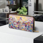 This beautifully designed wallet celebrates the spirit of Easter with a radiant floral cross, symbolizing renewal, hope, and the triumph of life over death. The cross, crafted from vibrant blooms in pastel shades of pink, blue, yellow, and white, represents the resurrection of Christ and the promise of new beginnings. A soft golden light shines from behind, adding a sense of divine warmth and grace, while the intricate arrangement of flowers evokes the joy and beauty of creation.