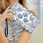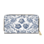 Embodying timeless charm and serene devotion, the Sacred Elegance: Blue and White Devotion Leather Wallet Purse showcases an exquisite blue and white pattern inspired by sacred artistry. The intricate design features blooming roses, delicate sacred hearts, and graceful doves, all beautifully rendered in classic monochromatic tones.