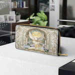 Crafted from premium leather, this wallet ensures durability and sophistication, with practical compartments and a secure zipper closure. Its ethereal design serves as a constant reminder of the guidance and presence of the Holy Spirit in daily life.