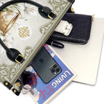 MEDIUM (13.8”× 10.6”× 5.5”): Graceful and versatile. Holds your Missal, devotional journal, water bottle, hand cream, wallet, phone, and even a folded shawl for chilly chapels. Perfect for parish meetings, adoration, or daily errands with purpose.