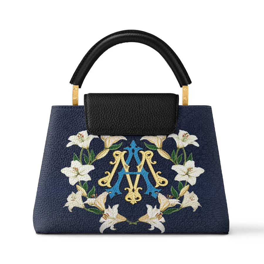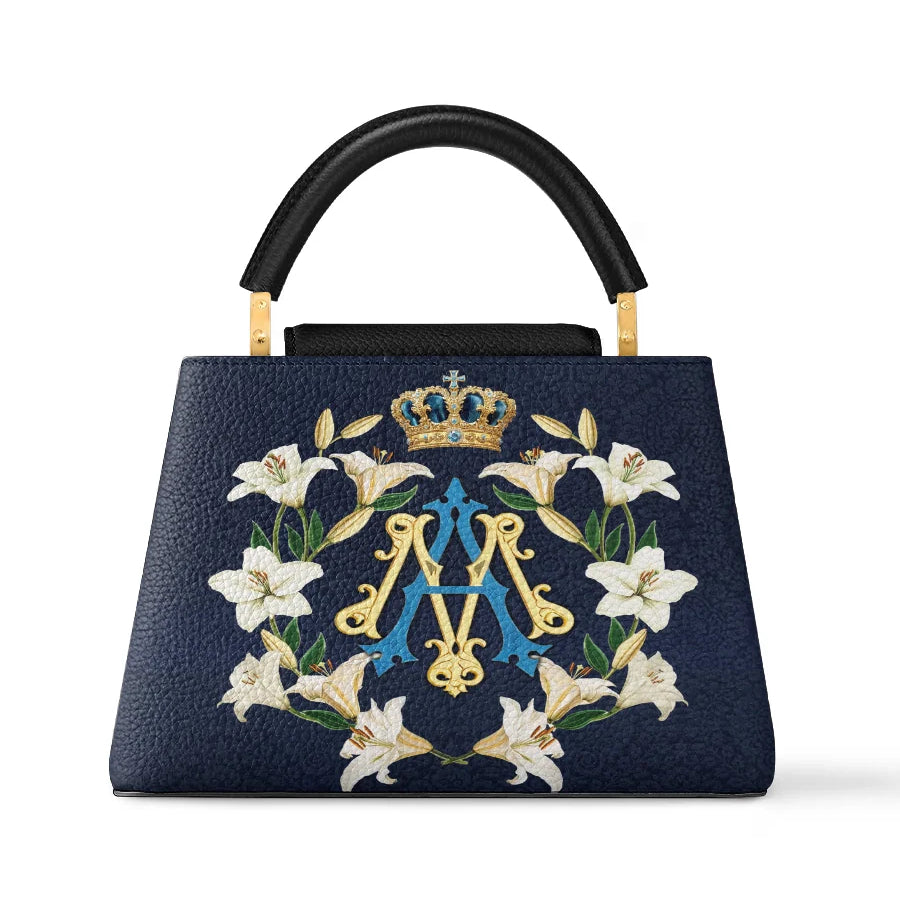 Catholight Sacred Elegance Blue and White Devotion Leather Satchel Bag