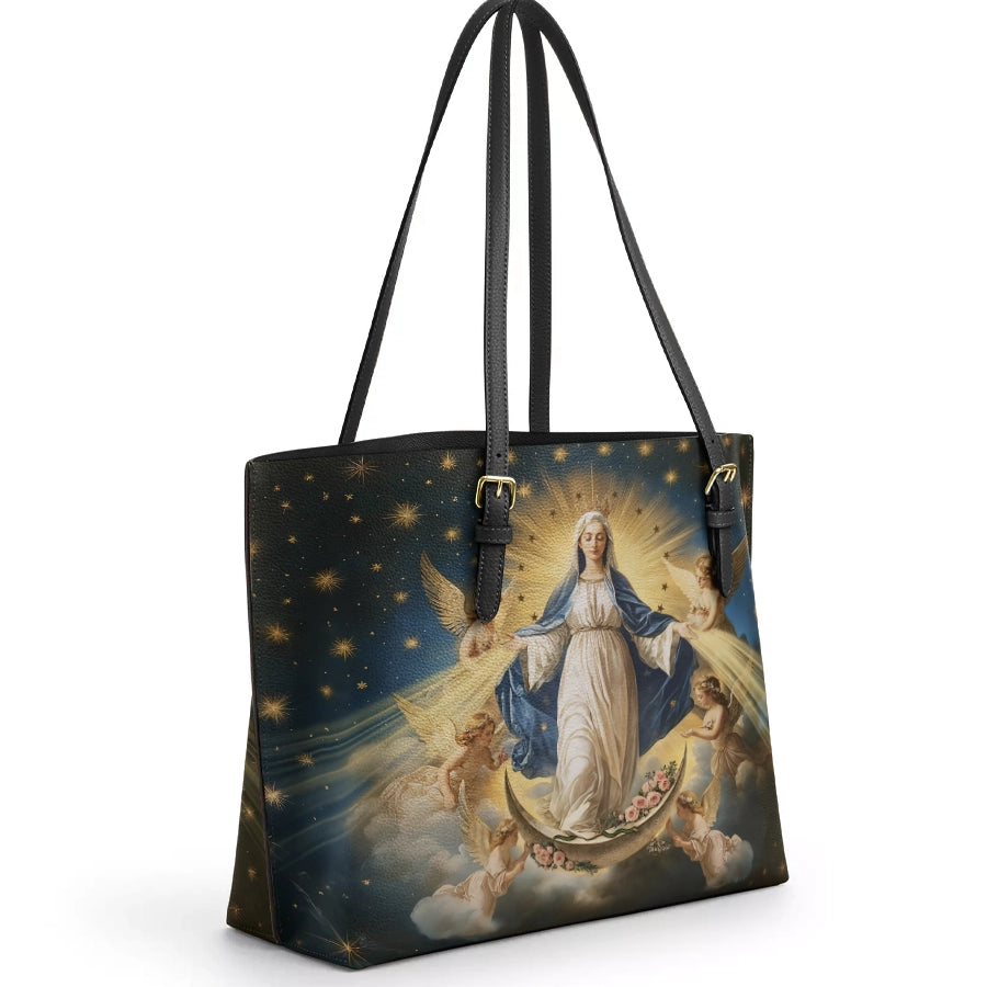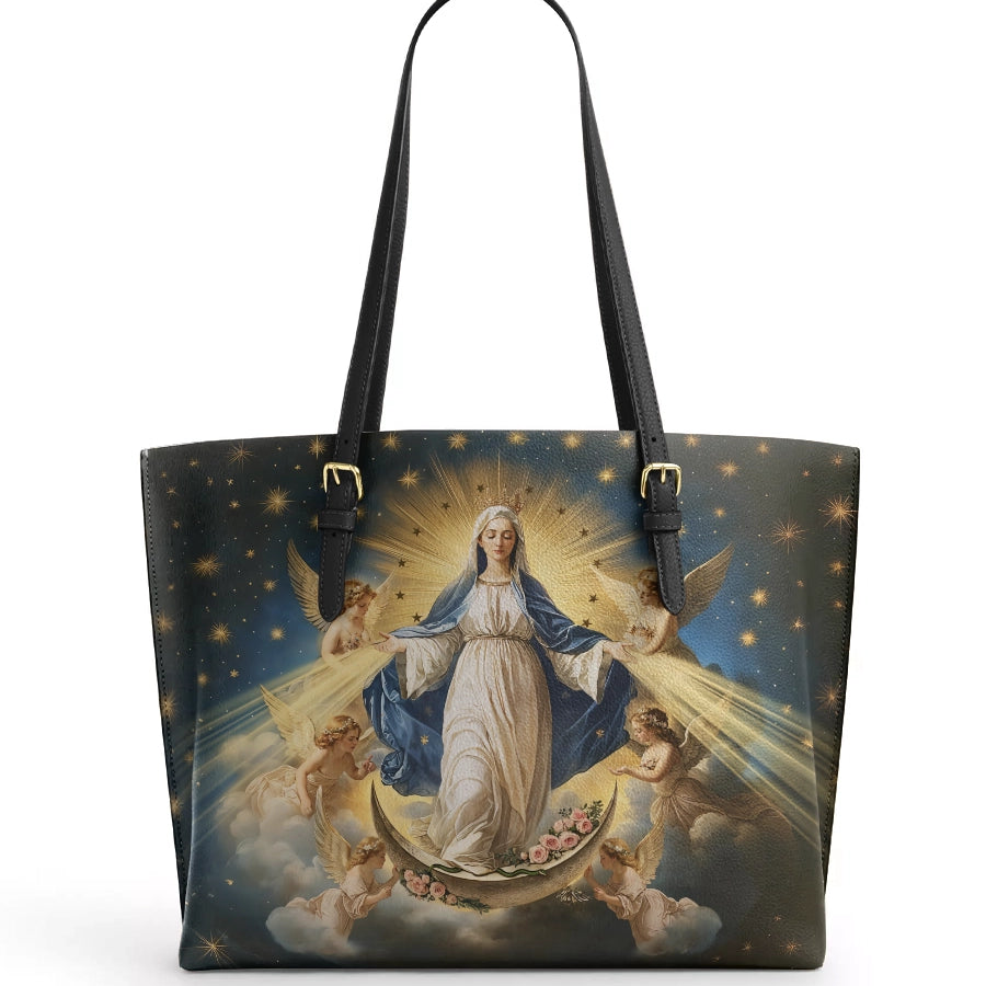 Catholight Immaculate Heart of Mary Elegance Leather Tote Bag