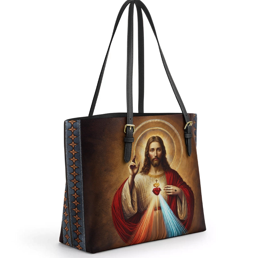 Catholight Trinity Divine The Holy Grace Leather Tote Bag