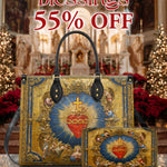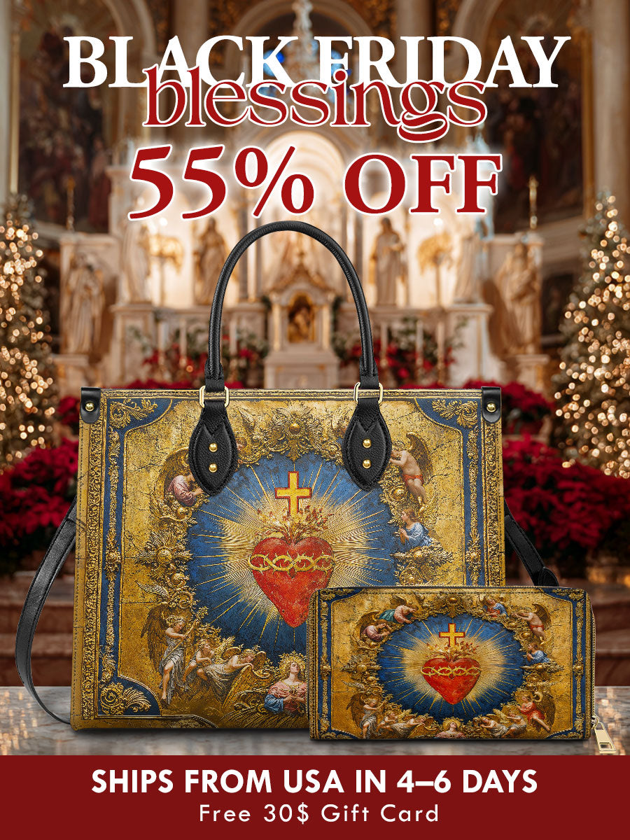 The structured handbag offers everyday elegance and function, while the matching wallet keeps your essentials close — both designed to carry more than just belongings, but also devotion.