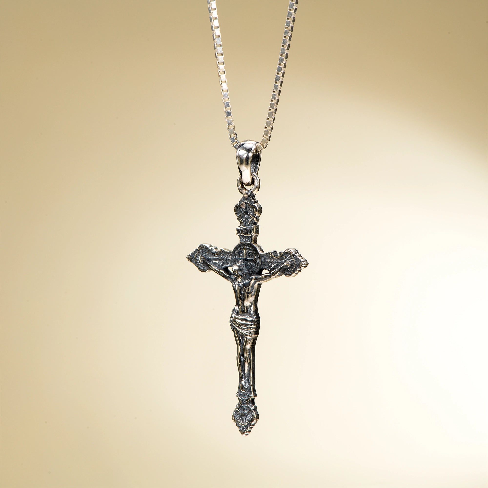 Catholight St. Benedict Crucifix Necklace in Oxidized Sterling Silver