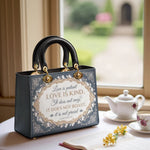 This leather bag serves as a daily reminder of the values of love, kindness, and humility, offering inspiration and peace wherever you take it. The intricate craftsmanship and thoughtful design make it a versatile accessory, perfect for any setting.