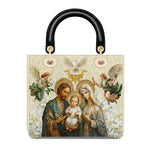 Carrying this bag brings a sense of spiritual connection and grace, a daily expression of faith and devotion. The intricate details of the art, from the heavenly doves to the tender embrace of the family, create a visual masterpiece that resonates deeply with the heart.