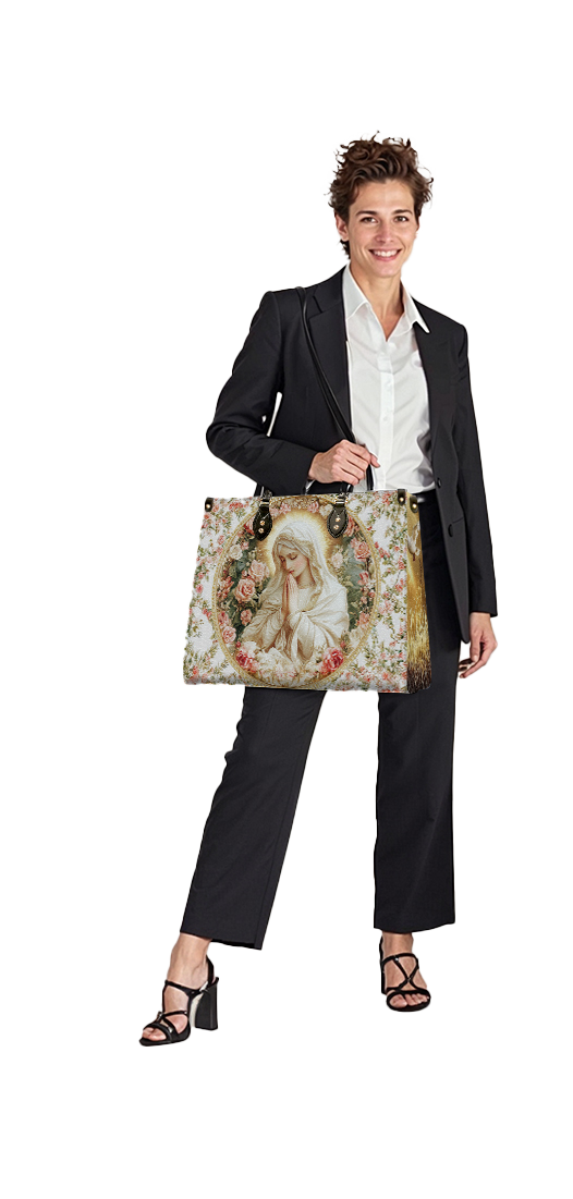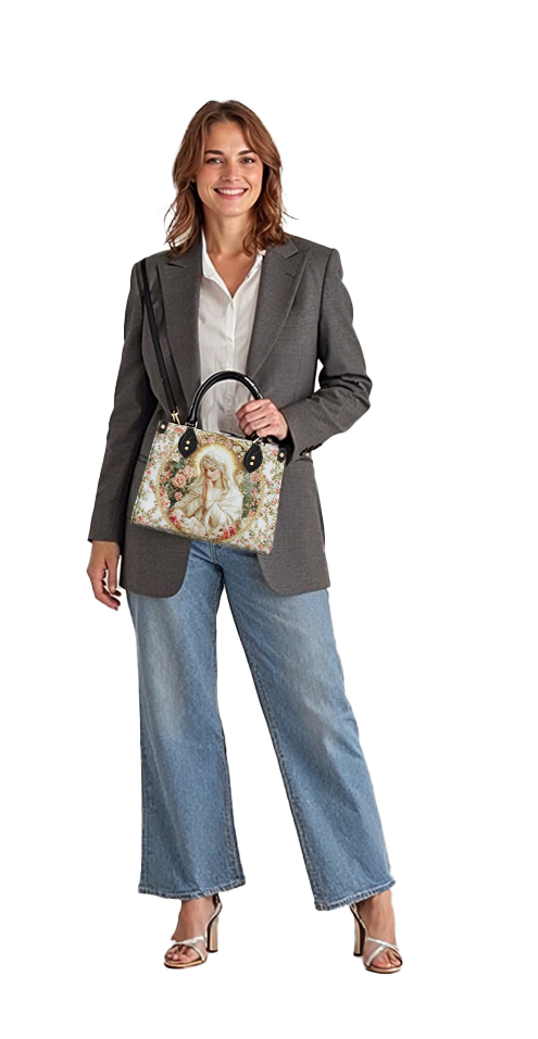 Perfect for those who value faith-inspired artistry and meaningful design, this leather tote makes a heartfelt gift or a cherished keepsake. Its elegant craftsmanship ensures it remains a timeless accessory, radiating warmth and divine love with every use.
