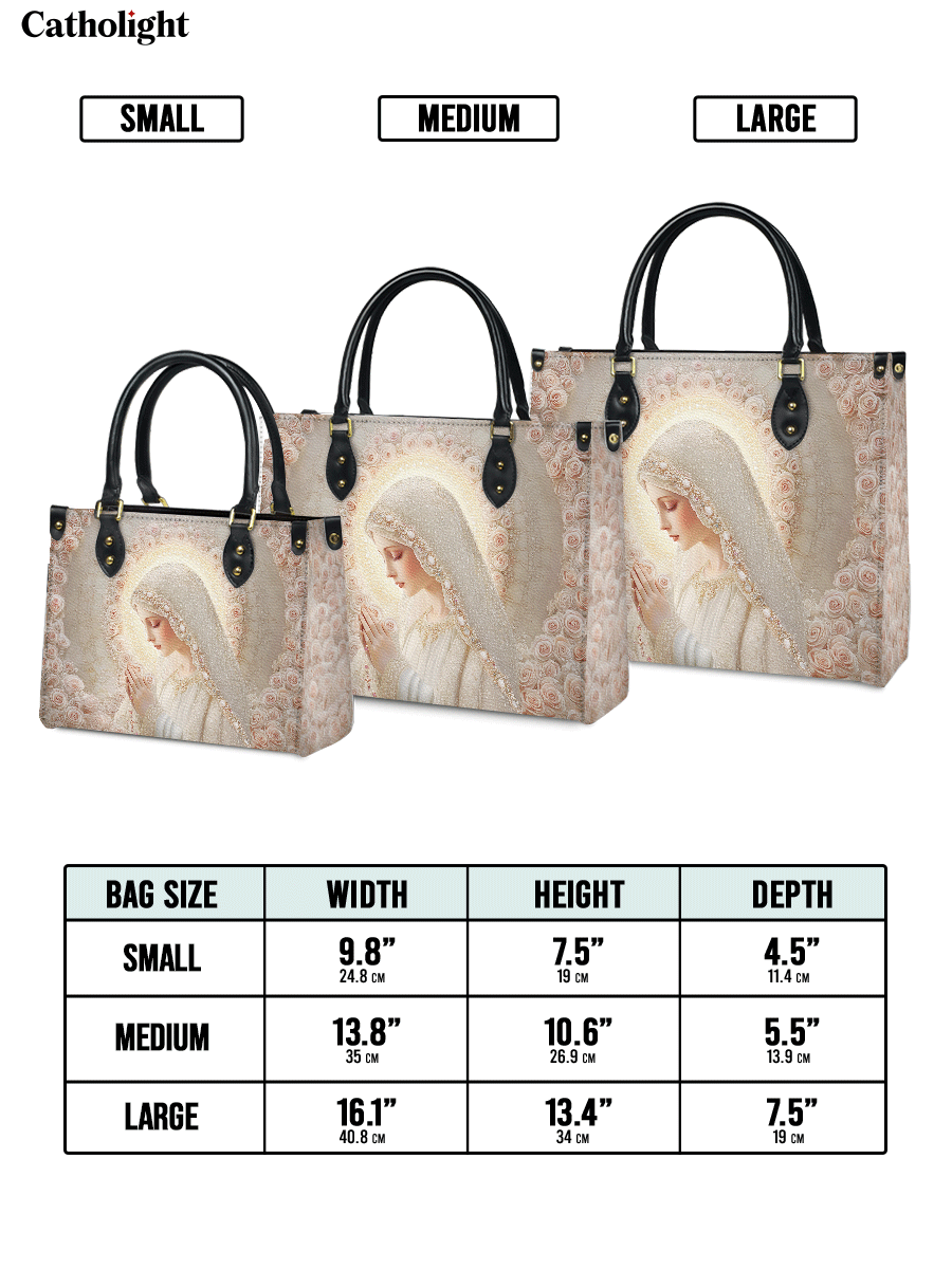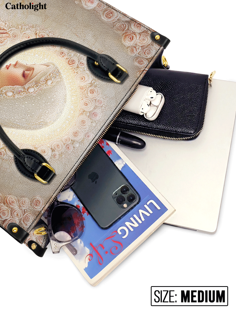 The "Rose Halo Devotion Leather Bag" is more than an accessory—it is a cherished keepsake and a symbol of faith. Its impeccable design and meaningful artwork make it a thoughtful gift or a treasured addition to your collection, celebrating the union of spirituality and beauty.