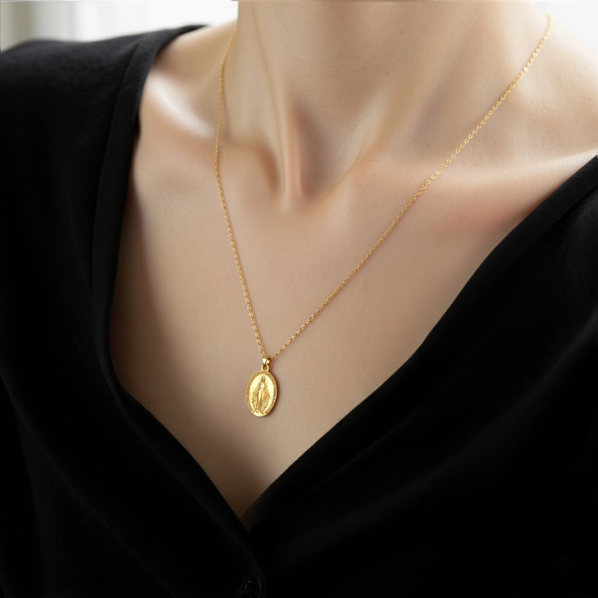 Catholight Miraculous Mary Necklace in Gold Vermeil