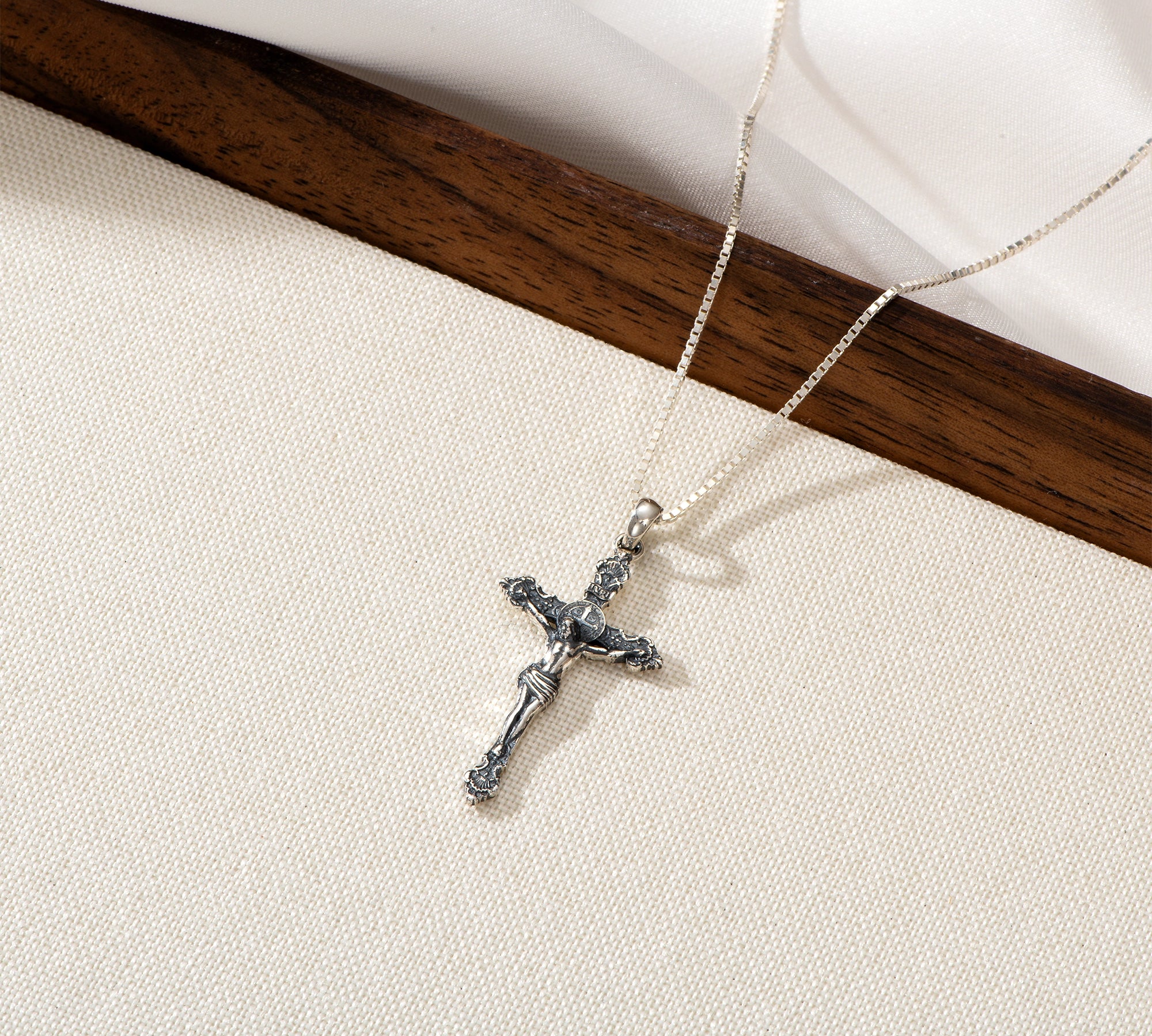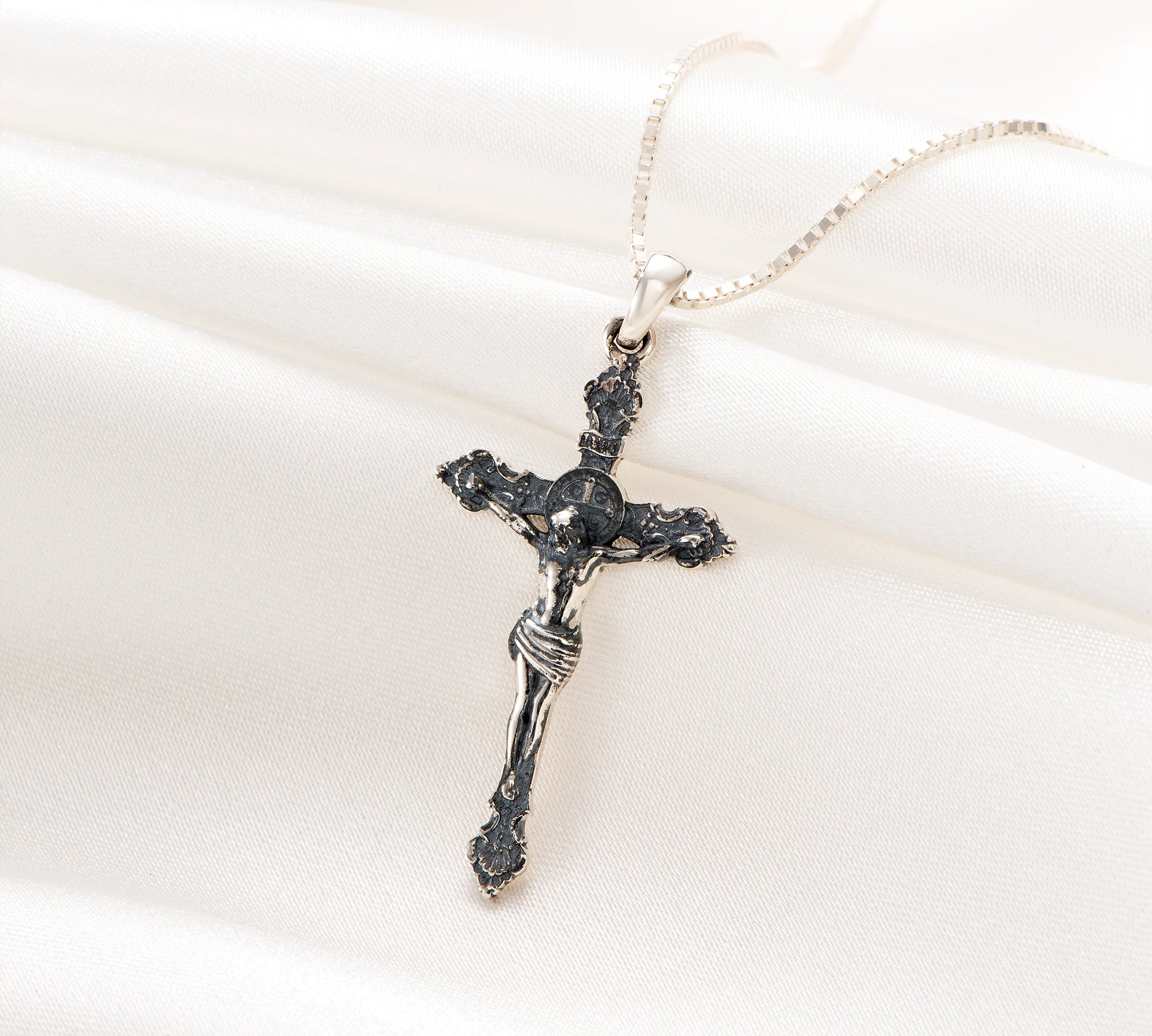 Catholight St. Benedict Crucifix Necklace in Oxidized Sterling Silver