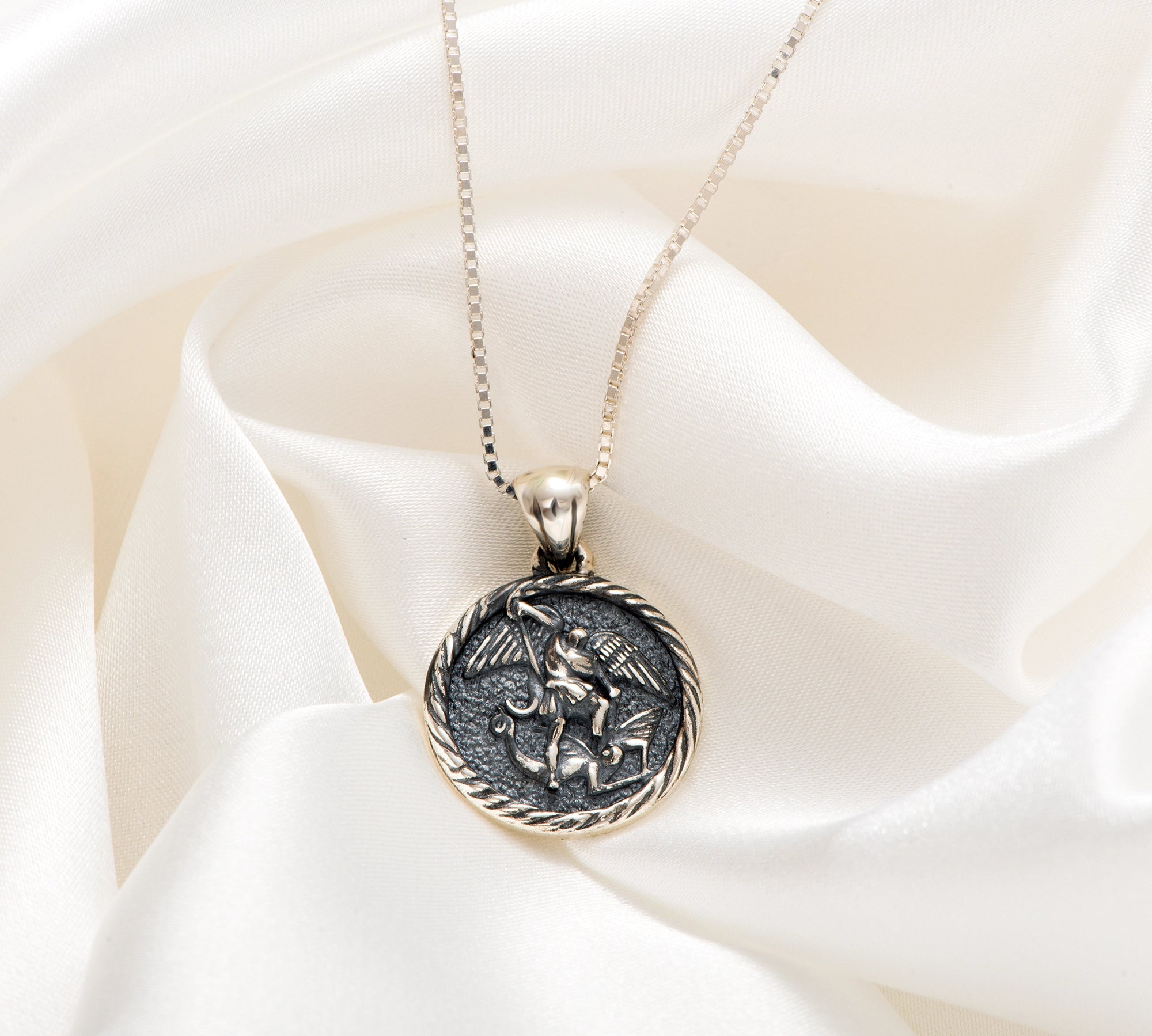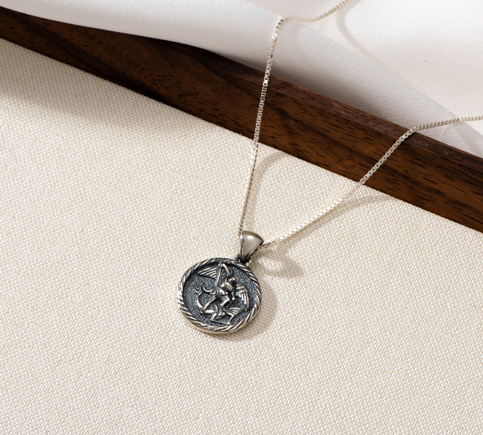 Catholight ST. Michael The Archangel Necklace in Oxidized Sterling Silver