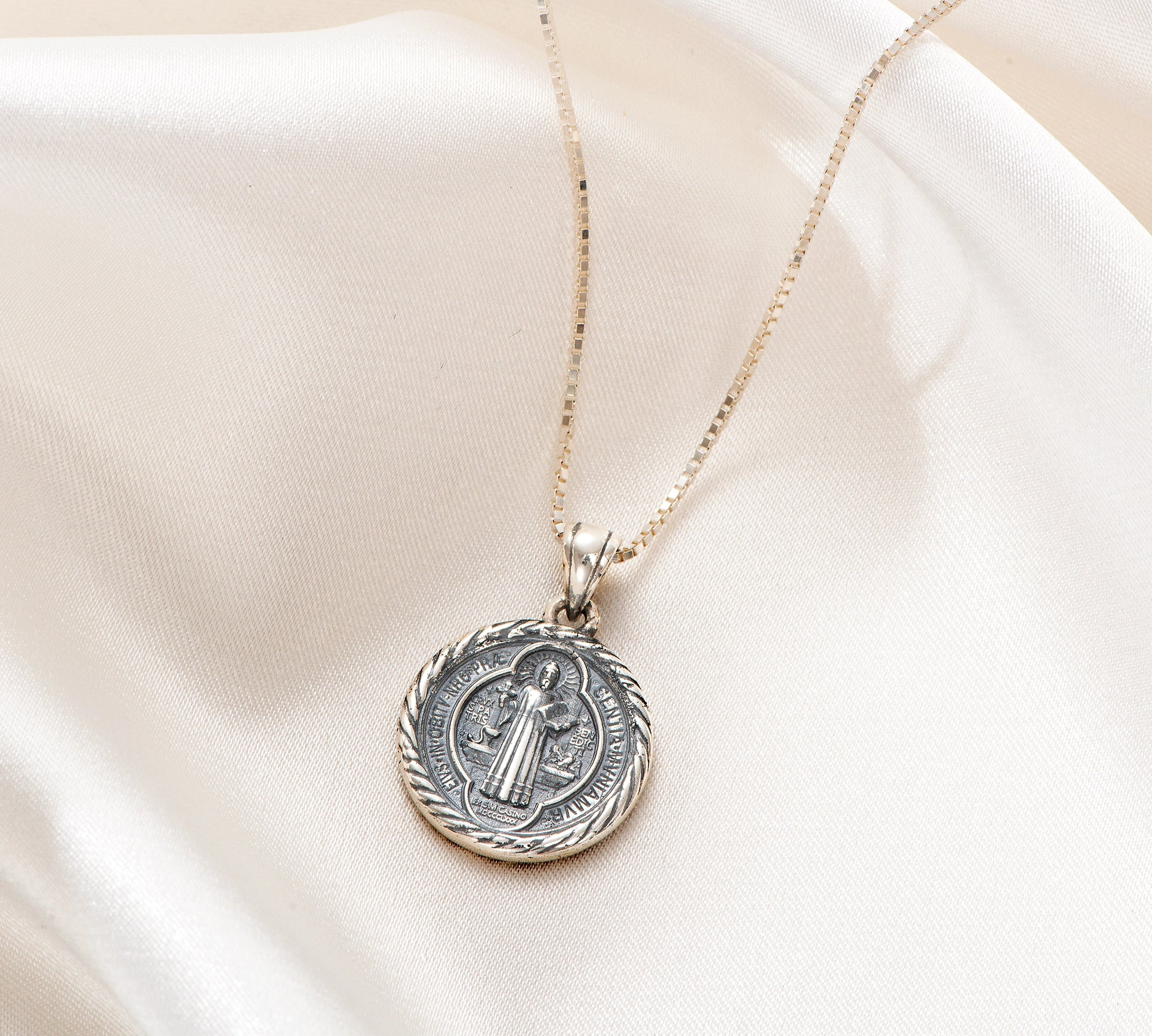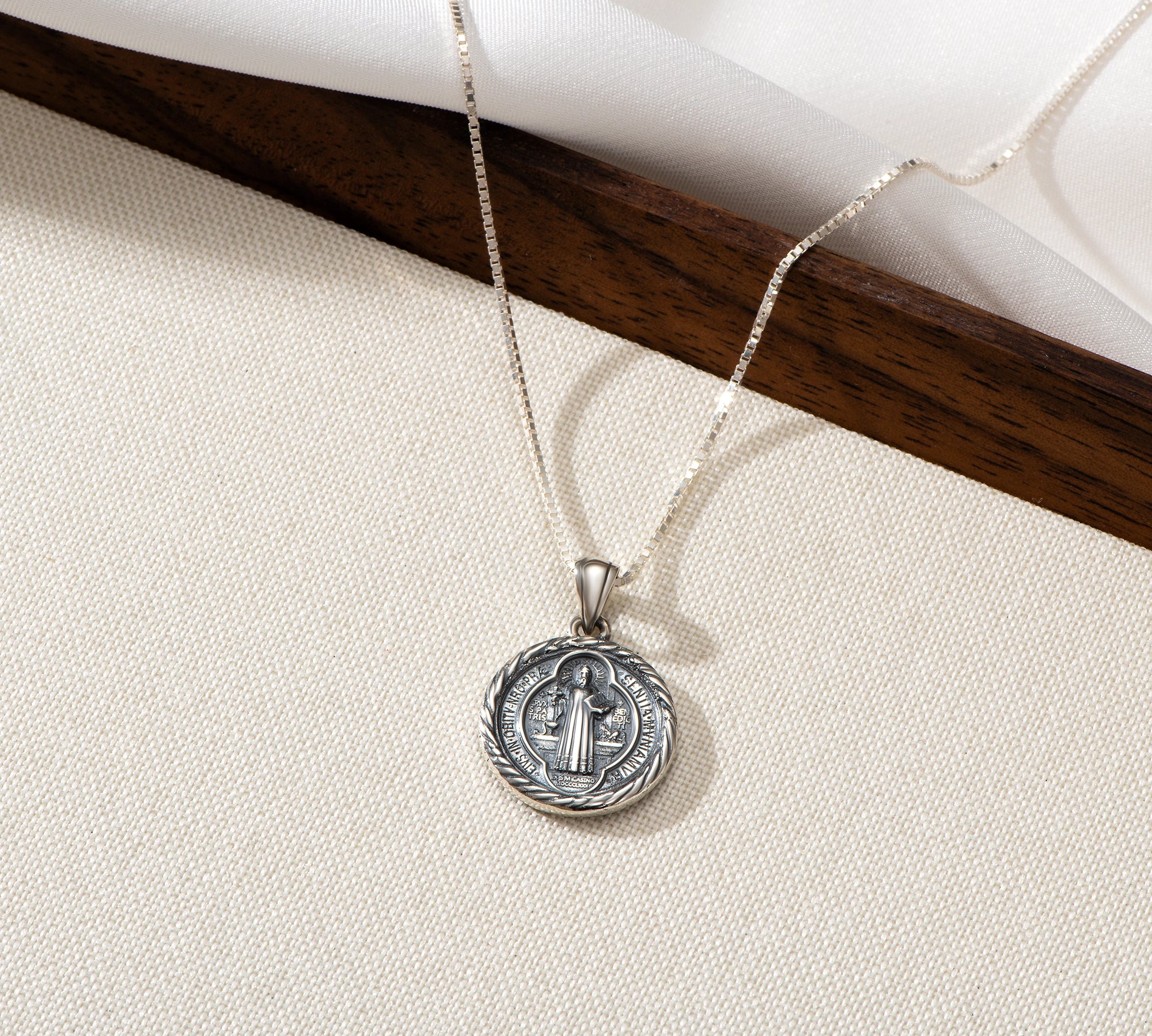 Catholight St. Benedict Necklace in Oxidized Sterling Silver