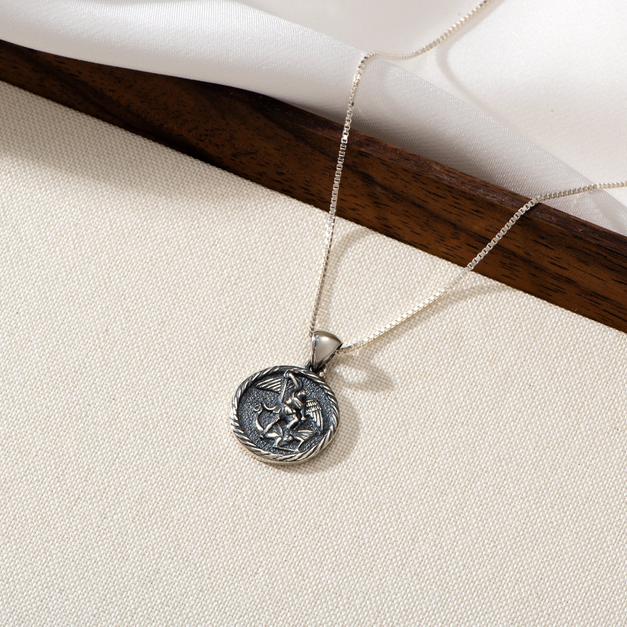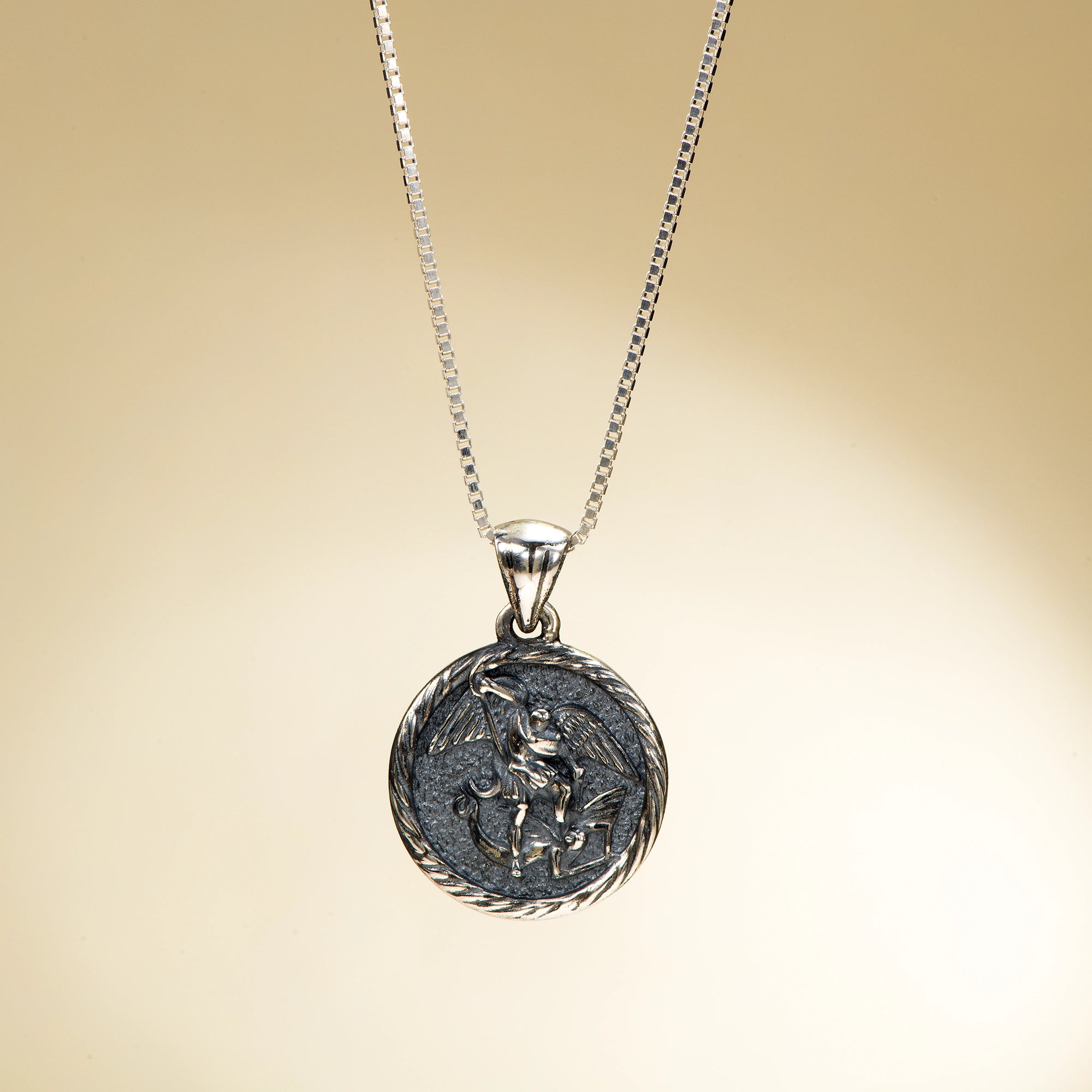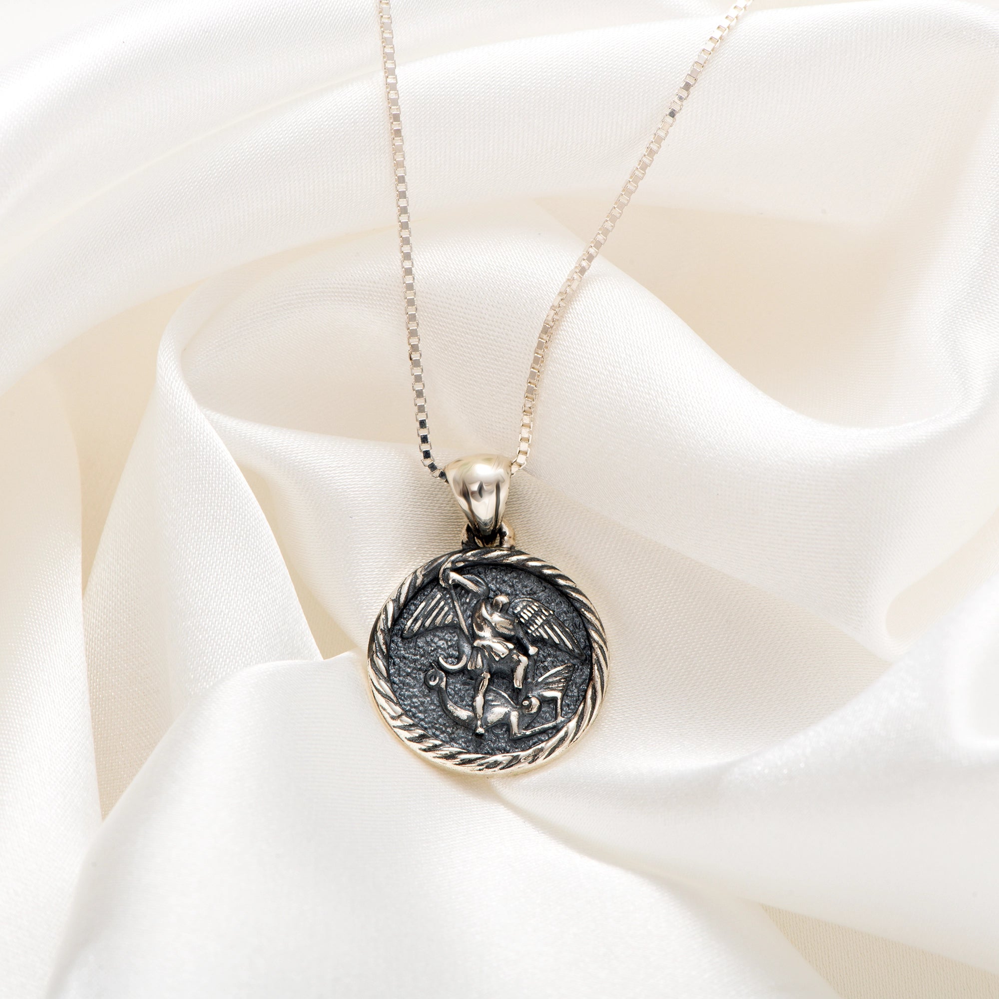 Catholight ST. Michael The Archangel Necklace in Oxidized Sterling Silver