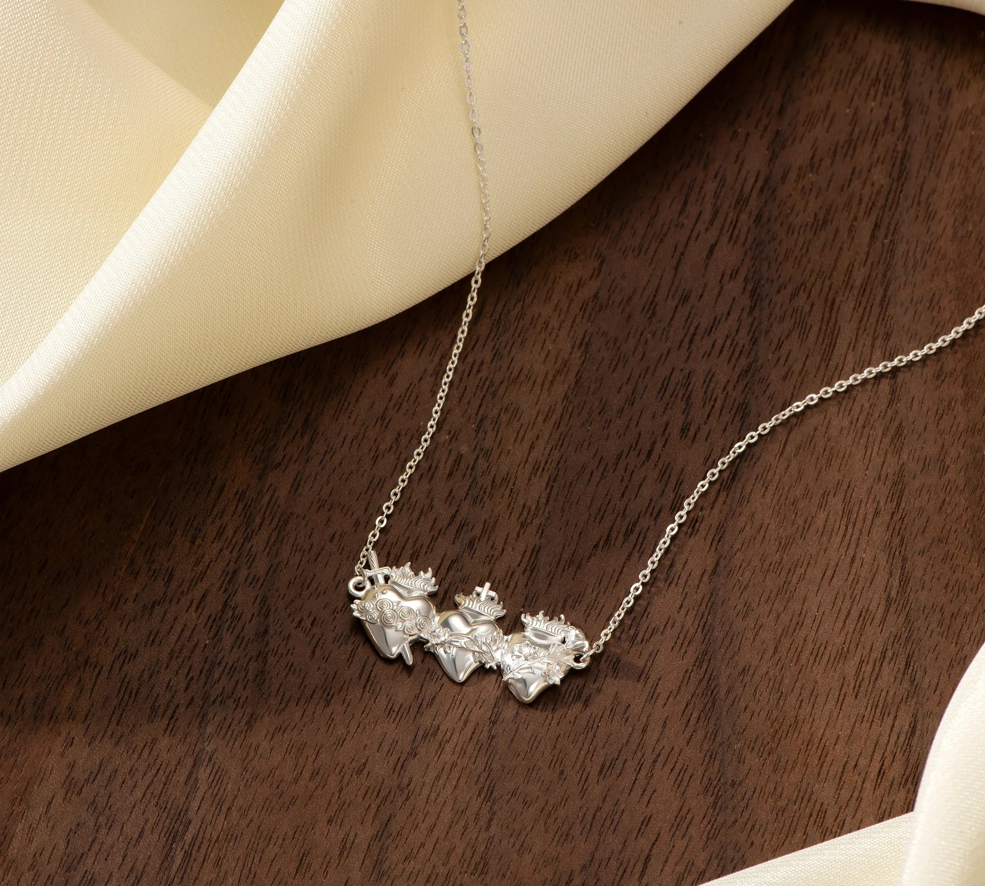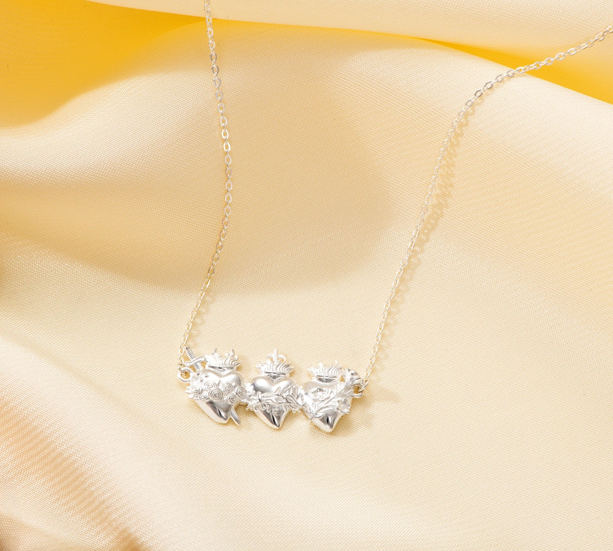 Catholight Holy Family Hearts Necklace in Sterling Silver