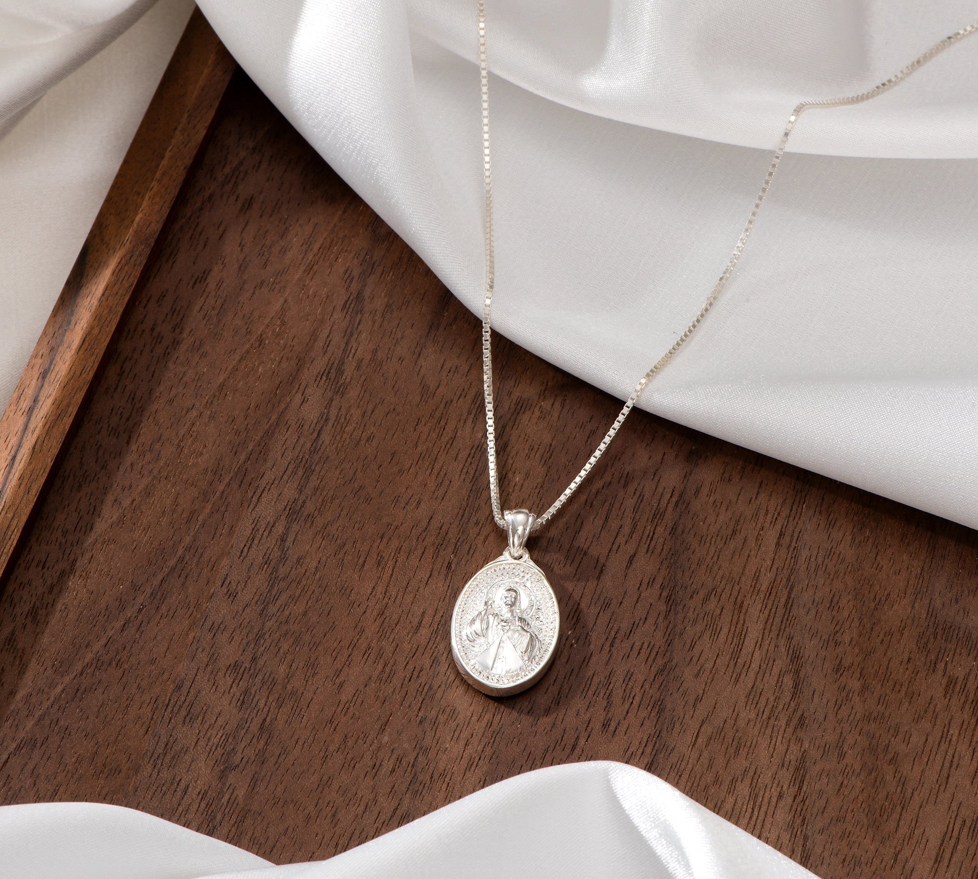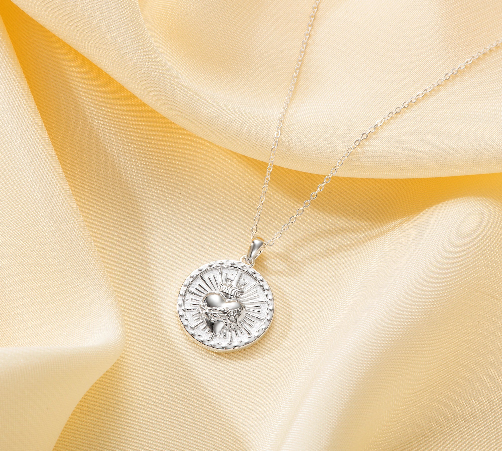 Catholight Sacred Heart of Jesus & Cross Protector Necklace in Sterling Silver