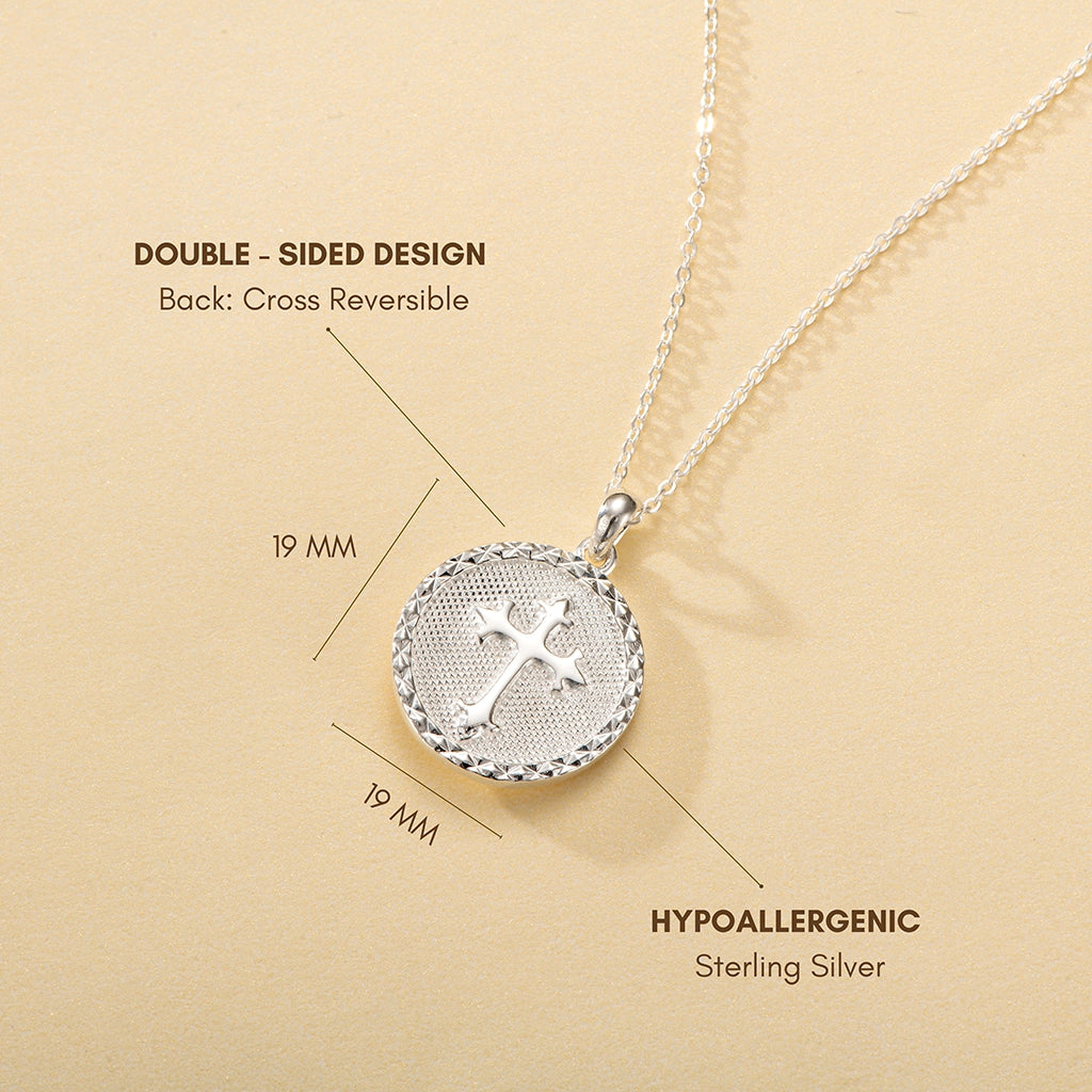 This double-sided pendant is a timeless devotion to the Sacred Heart of Jesus, ablaze with divine love and encircled with thorns—a profound symbol of mercy, suffering, and eternal compassion. On the reverse, a beautifully engraved cross anchors your heart in the mystery of the Resurrection and the triumph of faith.