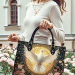 Perfect for church services, spiritual gatherings, or as a daily reminder of faith, this leather bag blends timeless elegance with profound spiritual meaning. It serves as a cherished accessory for women who seek inspiration and a connection to the Holy Spirit in their daily lives.