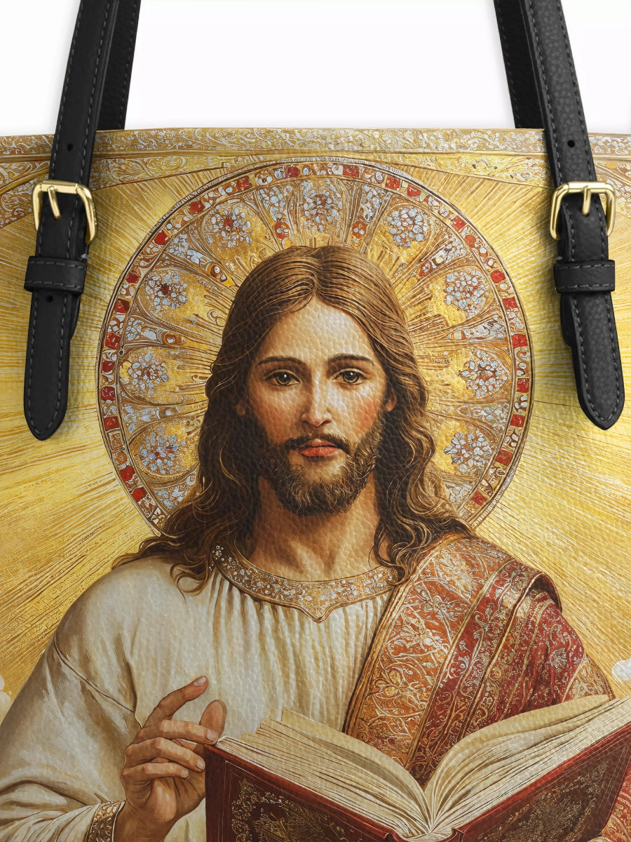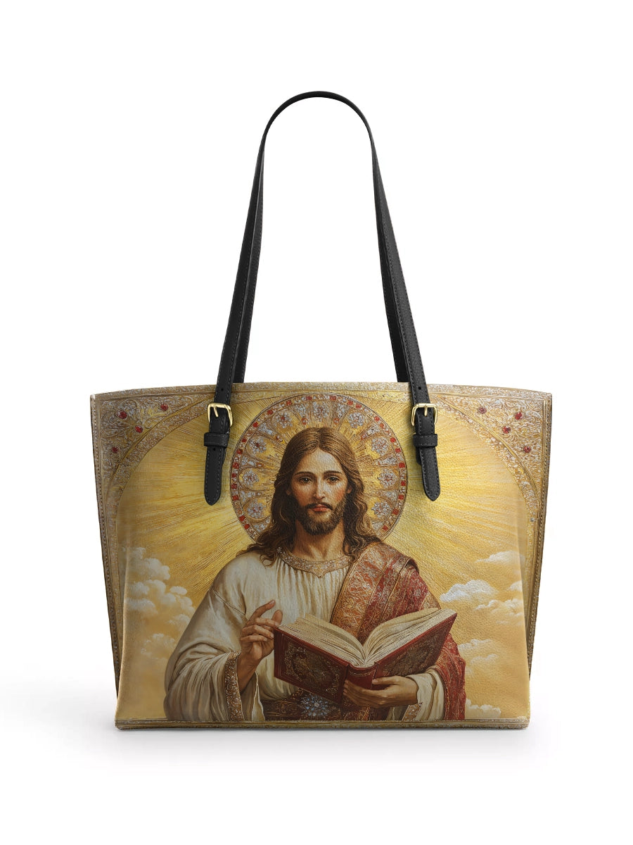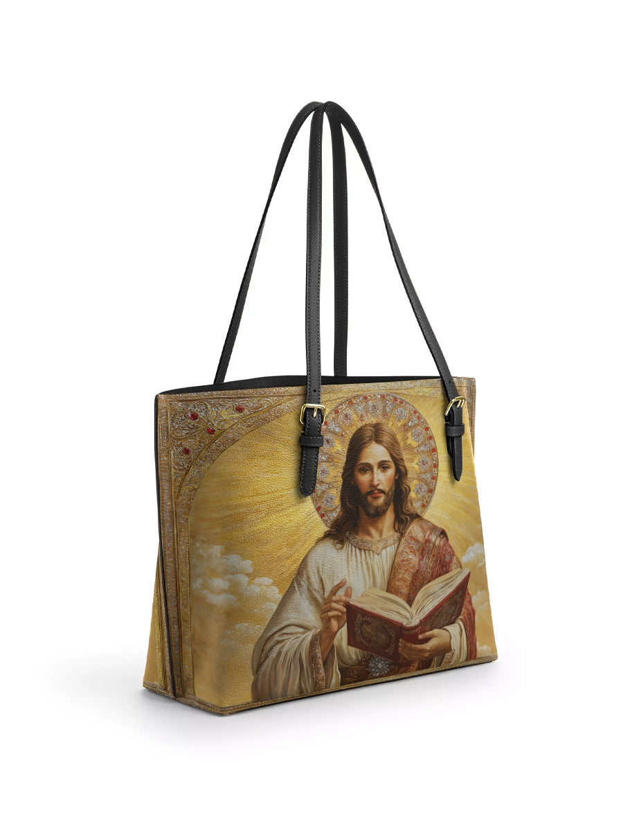 Catholight Jesus the Savior Eternal Light Leather Tote Bag