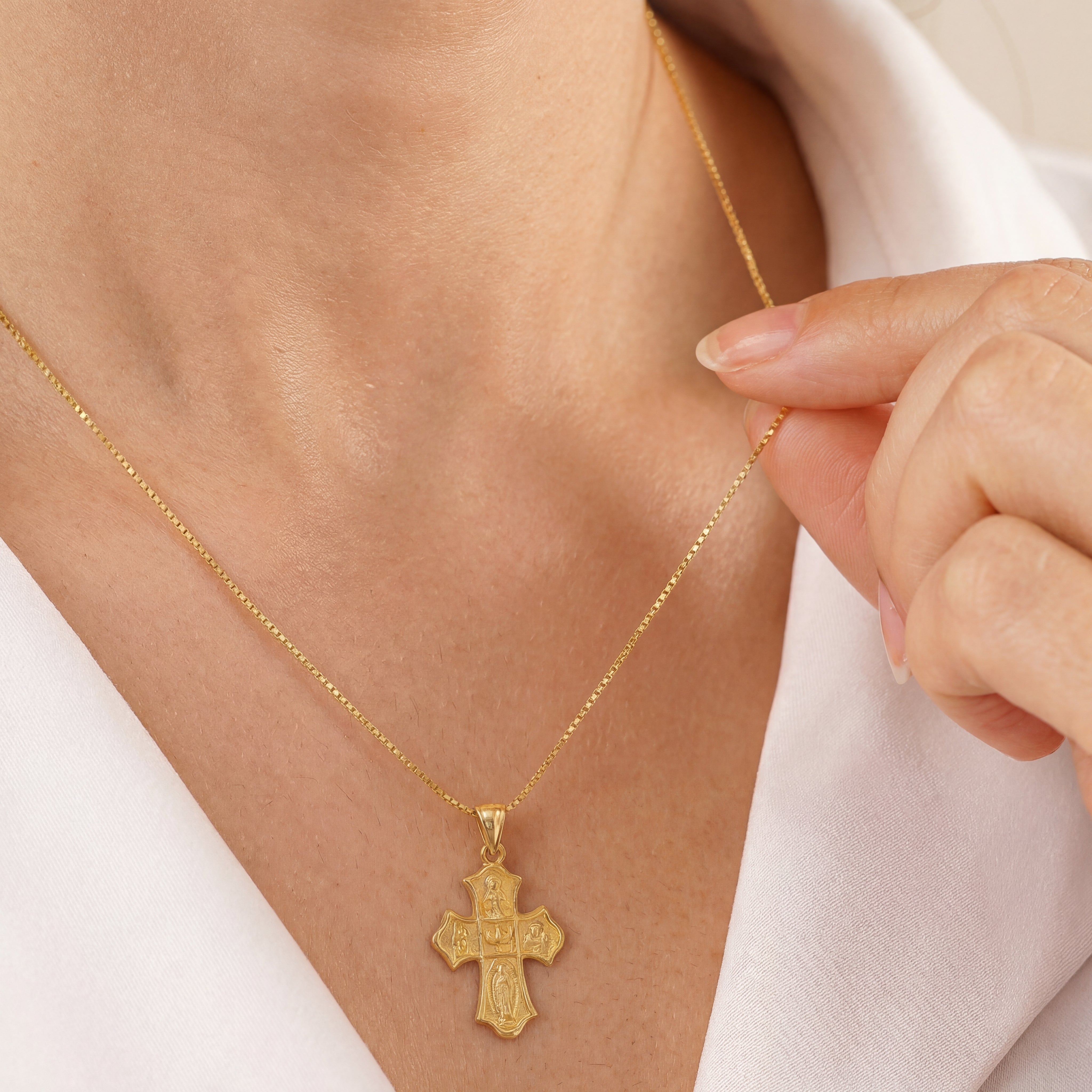 Catholight Vier-Wege-Kreuz-Halskette in Gold Vermeil