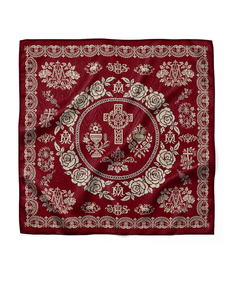 Crafted from Woodgrain Silk, this 70x70cm square scarf glows with a soft, luminous texture — elegant yet quietly powerful. Lightweight and smooth, it drapes effortlessly for prayer, Sunday Mass, or as a meaningful daily accessory.