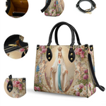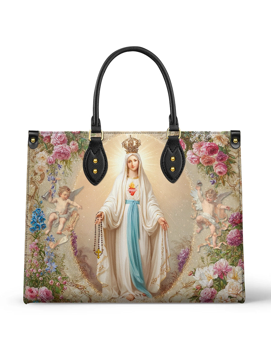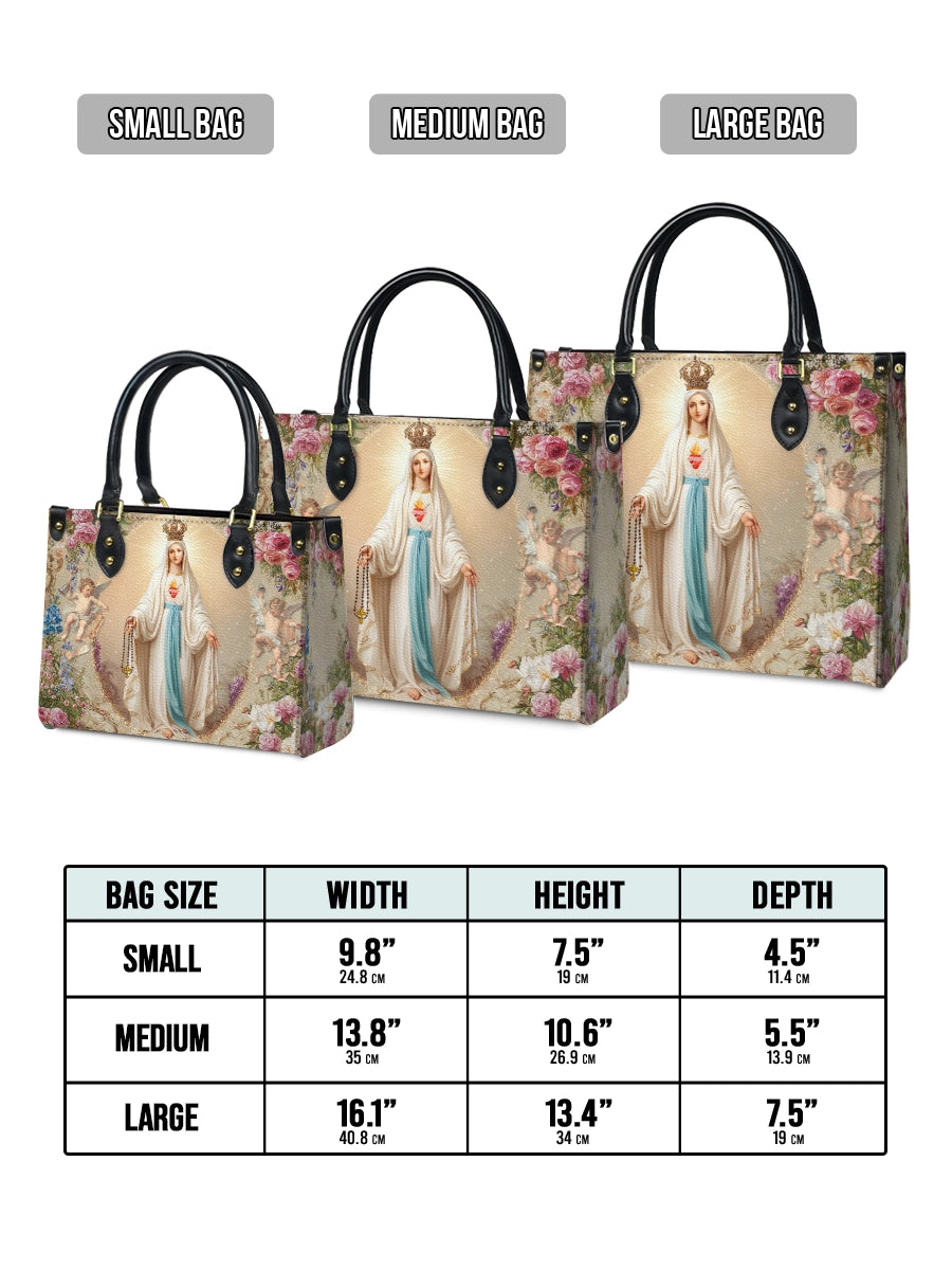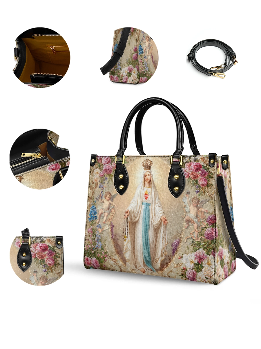 Whether chosen as a meaningful gift or a personal keepsake, this bag is both a refined accessory and a heartfelt expression of devotion. It is perfect for those who cherish Mary’s gentle presence and wish to carry a symbol of faith, love, and heavenly beauty with them each day.