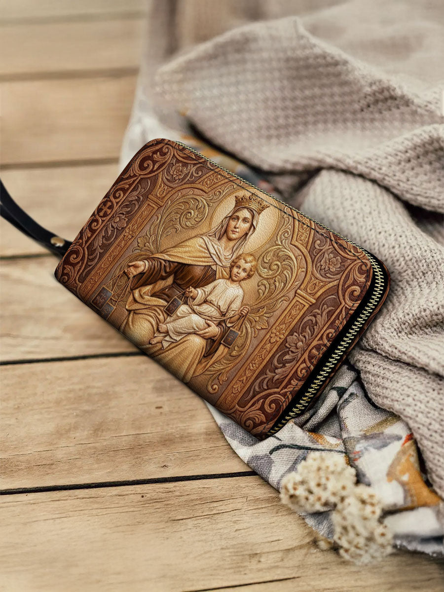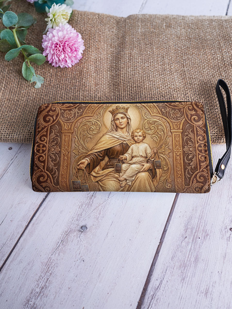 Inspired by Our Lady of Mount Carmel, this wallet is more than a beautiful accessory—it is a quiet expression of faith, protection, and devotion carried into everyday life.
