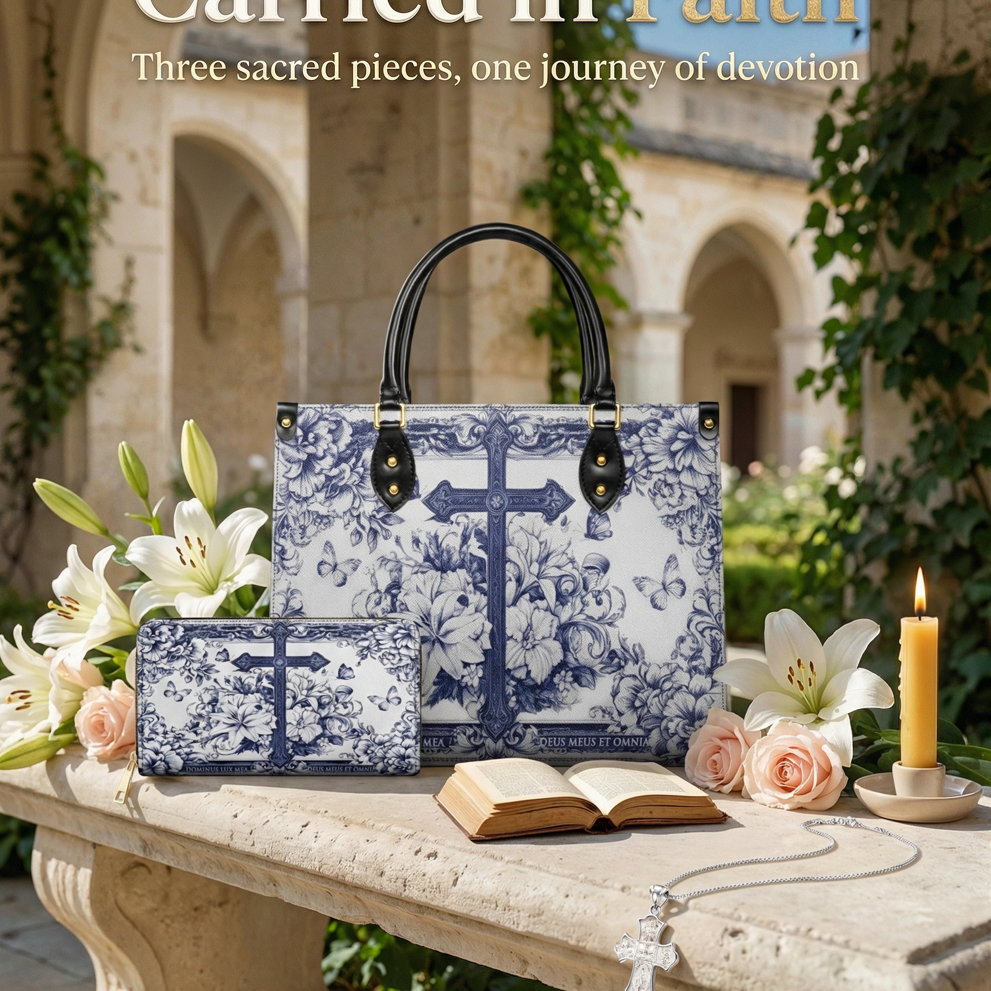 Catholight The Cross Amidst Blooming Faith Lady Leather Bag