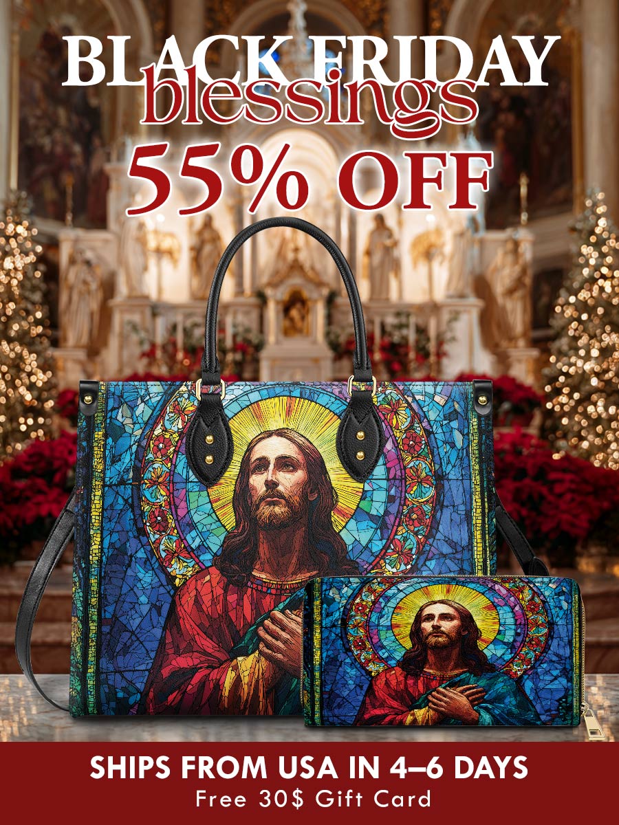 The elegant handbag offers structure and ample space for daily essentials, while the matching wallet adds beauty and organization — a timeless pair for women who walk with Christ in every step of life.